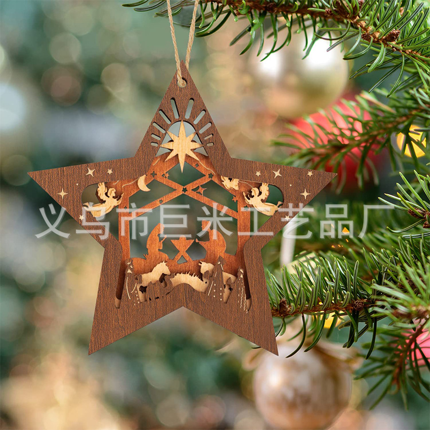 국경 간 크리스마스 장면 장식 다섯개 별 나무 크리스마스 트리 펜던트 화환 교수형 장식품 출생 장식 기념품
