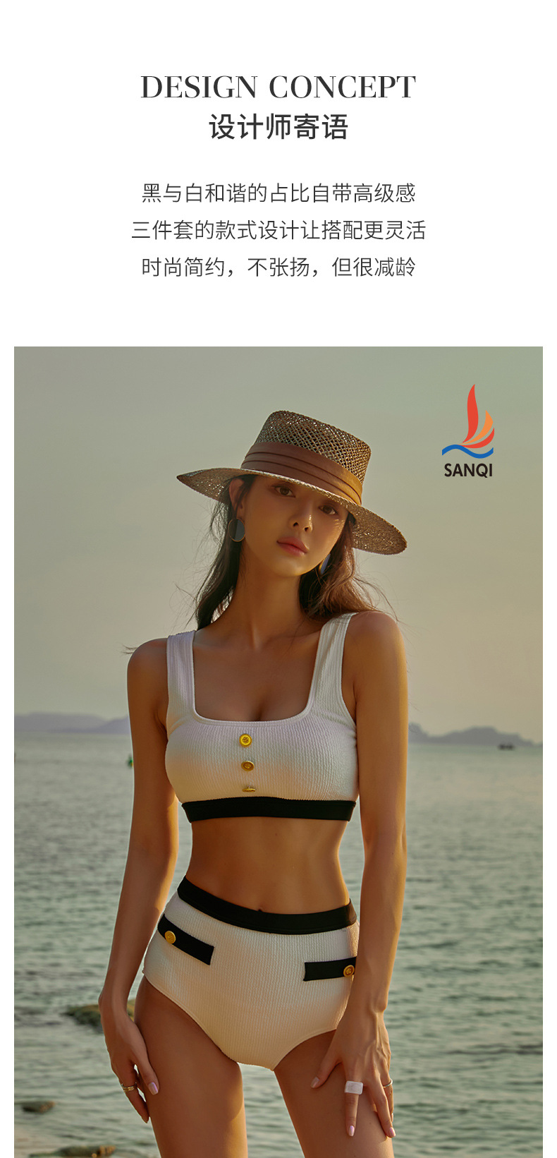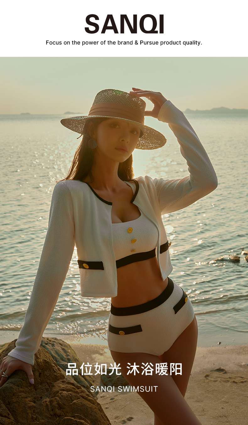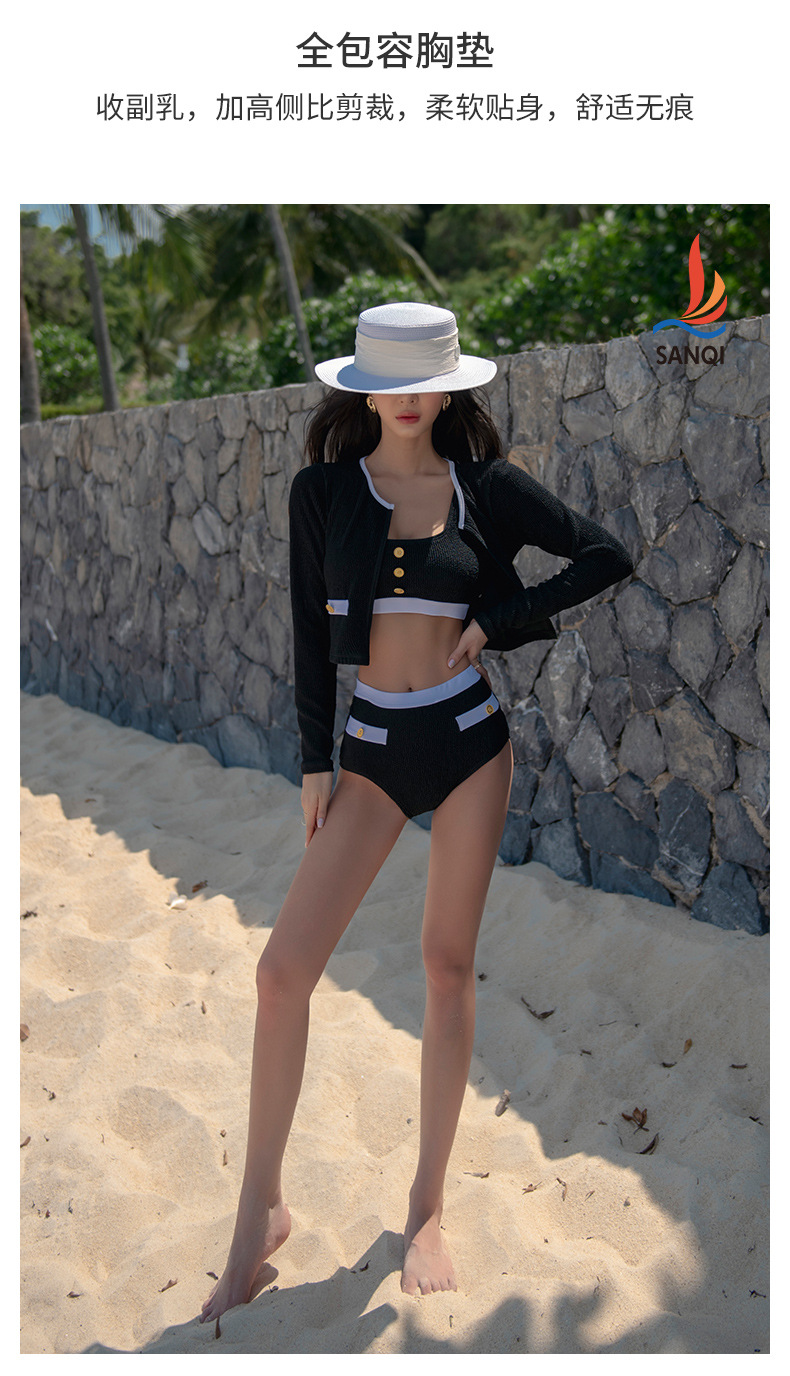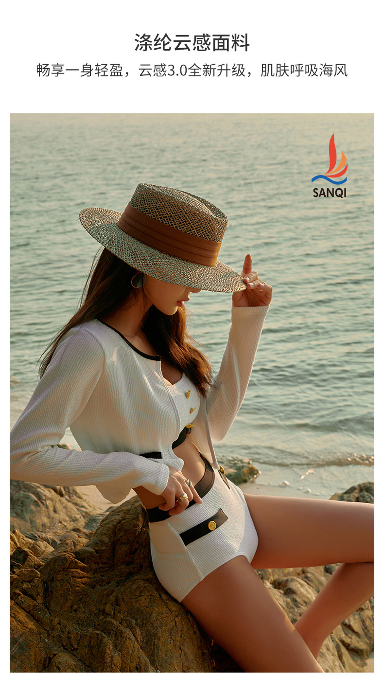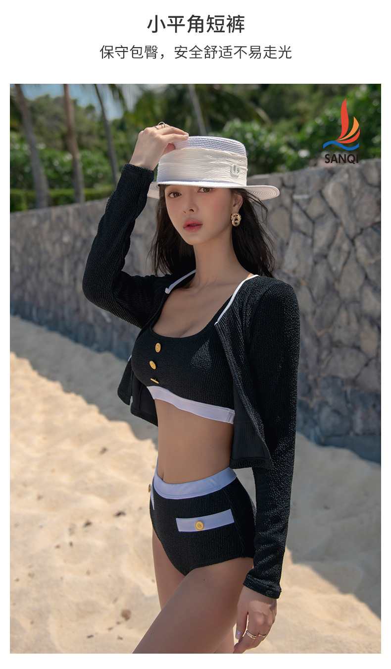 Sanqi Xiaoxiang 스타일 분할 수영복 여성용 2023 새로운 긴 소매 블라우스 쓰리 피스 온천 휴가 섹시한 비키니스토어 가기