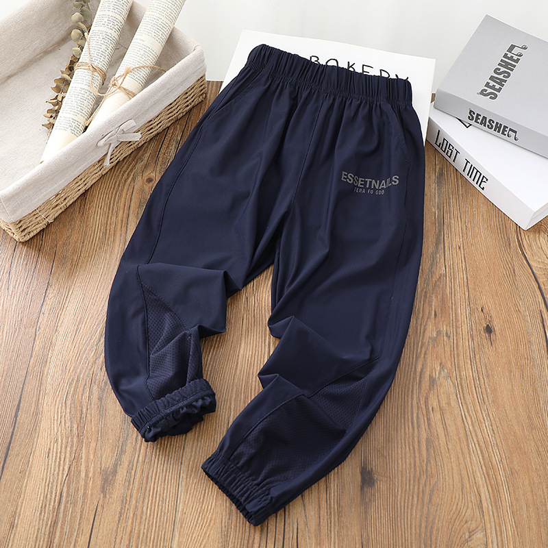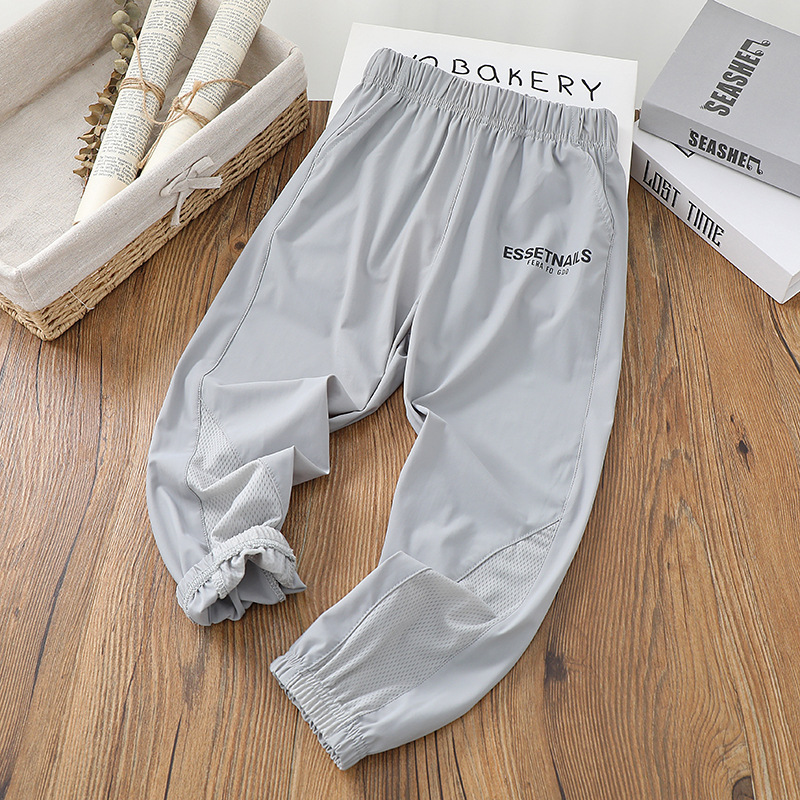 어린이 초박형 속건 스포츠 바지 2023 여름 남아 아이스 실크 롱 팬츠 큰 어린이 여름 쿨 모기 방지 바지스토어 가기