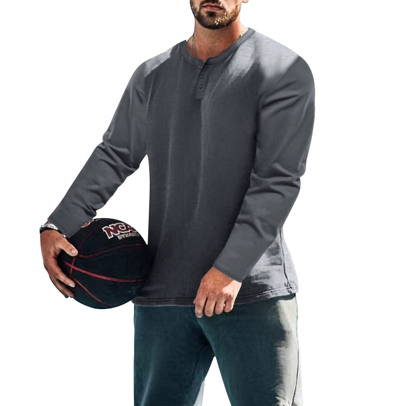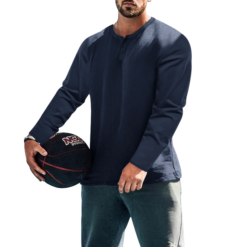 대외 무역 2023 가을 무거운 복고풍 아미 카지 남자 터프 가이 헨리 셔츠 긴 소매 티셔츠 기본 셔츠 탑스토어 가기