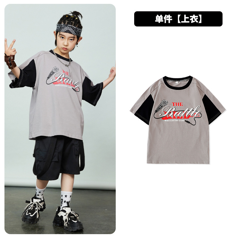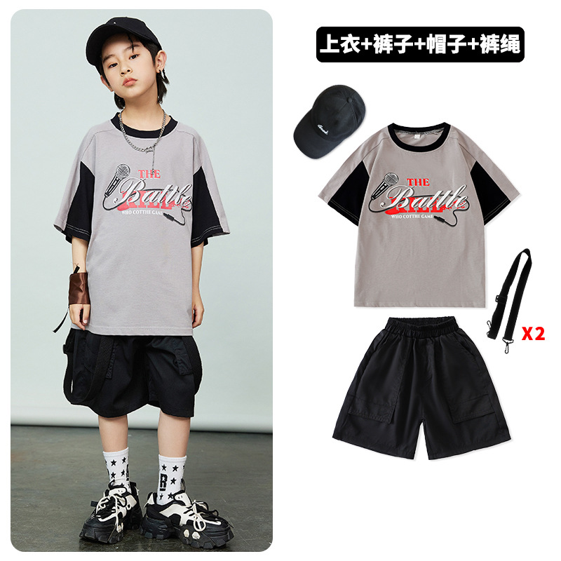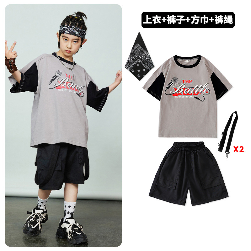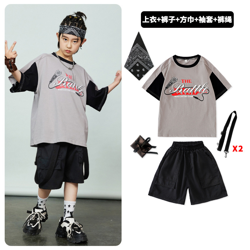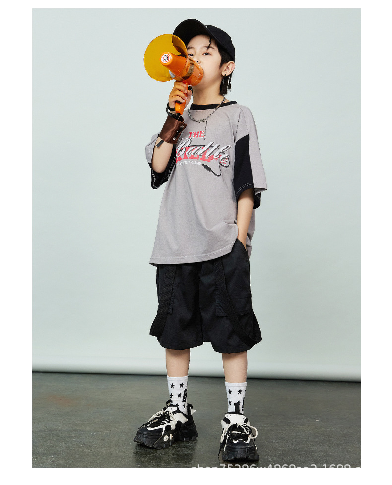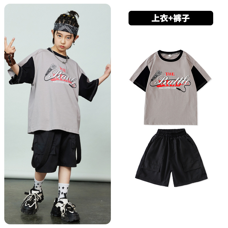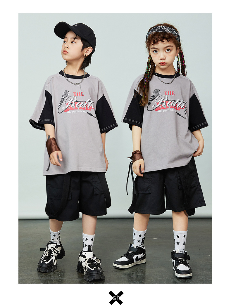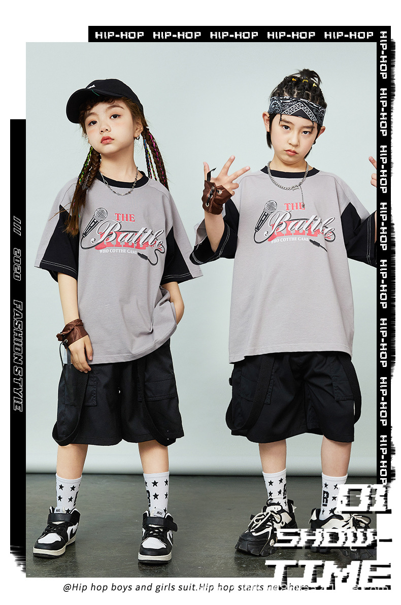 어린이 힙합 패션 의류 힙합 아동복 반팔 세트 소년 멋진 잘 생긴 패션 옷 소녀 튀긴 거리 소년 공연 옷 패션 패션스토어 가기