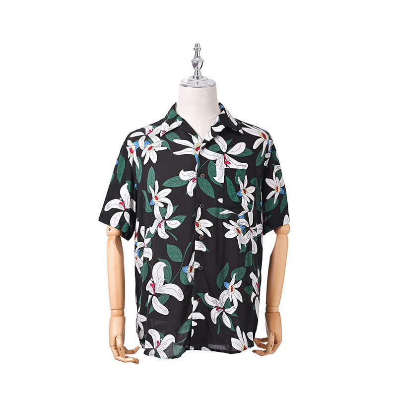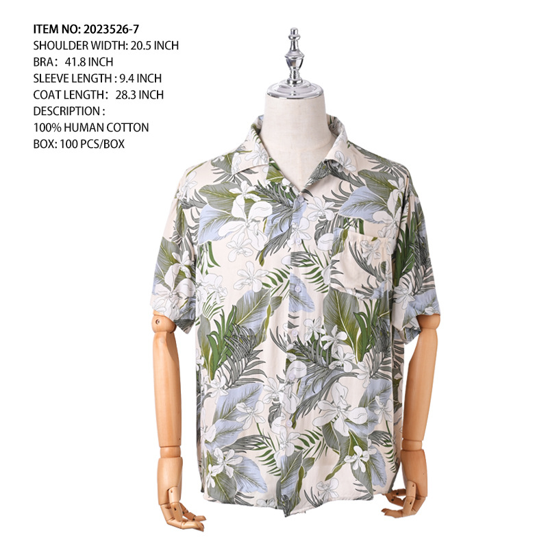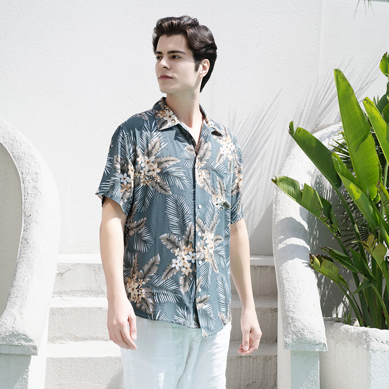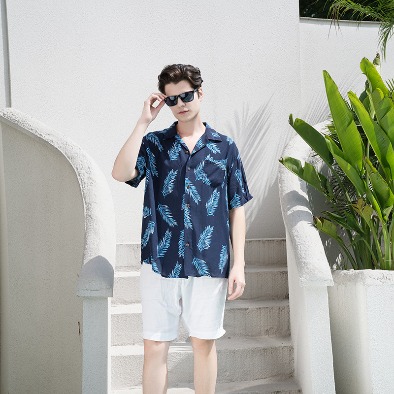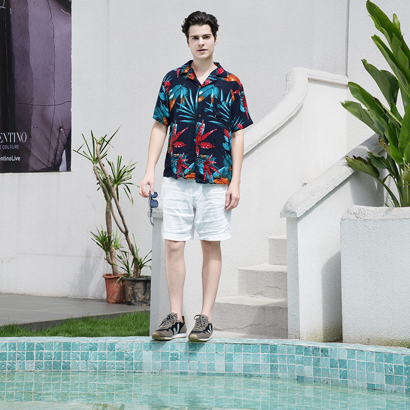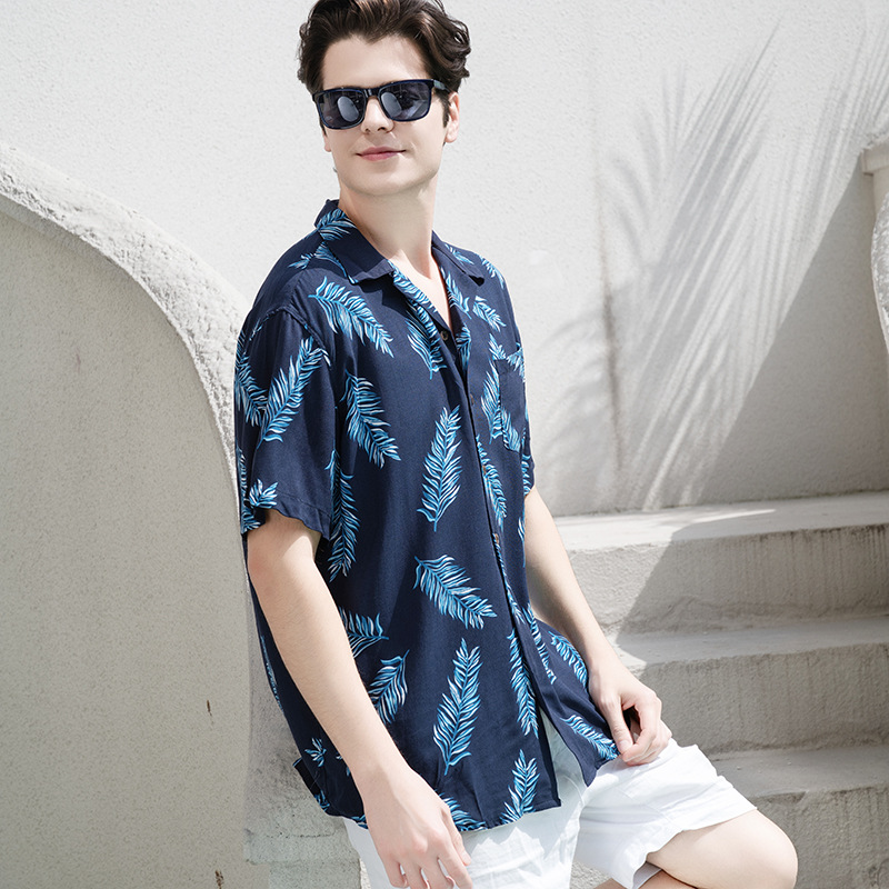 크로스 보더 남성용 하와이안 셔츠 유럽과 미국 레이온 인쇄 대외 무역 비치 셔츠 카디건 반팔 티셔츠 트렌디 한 디자인스토어 가기