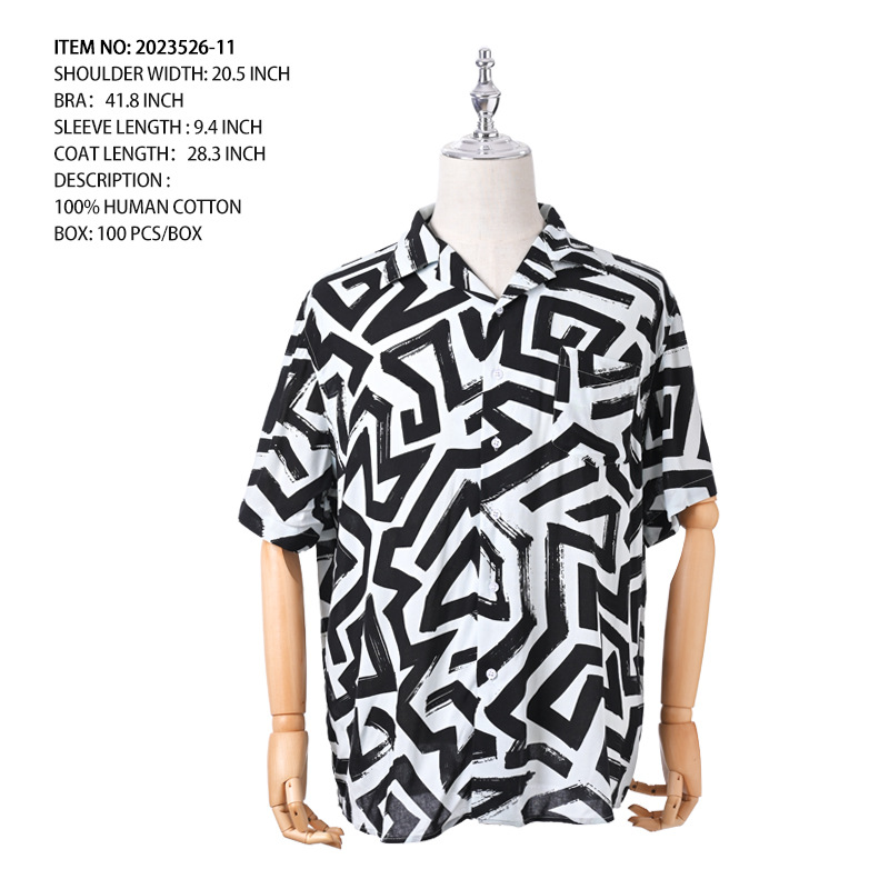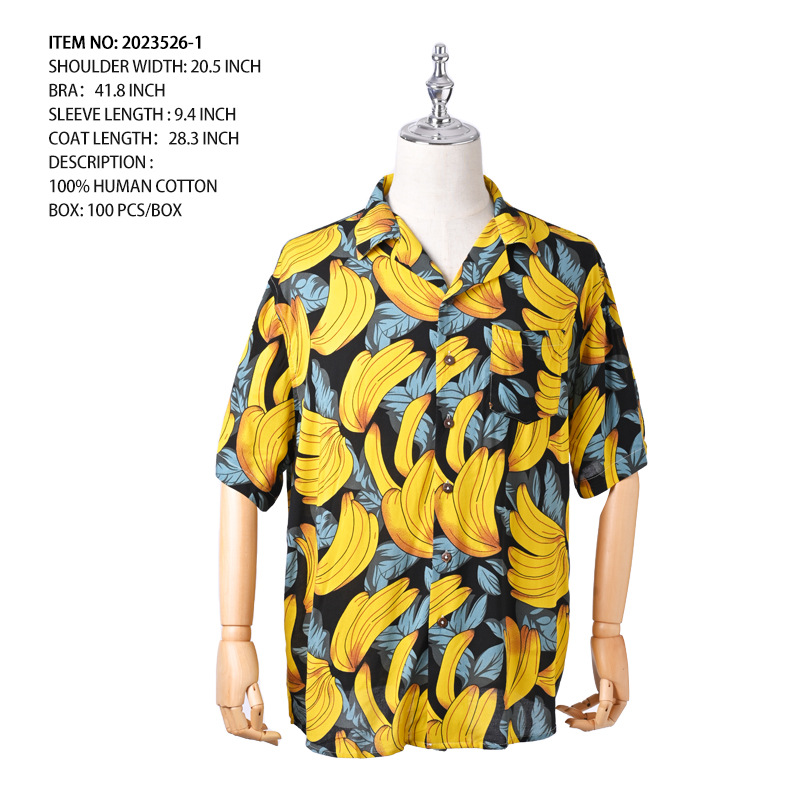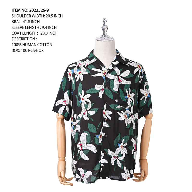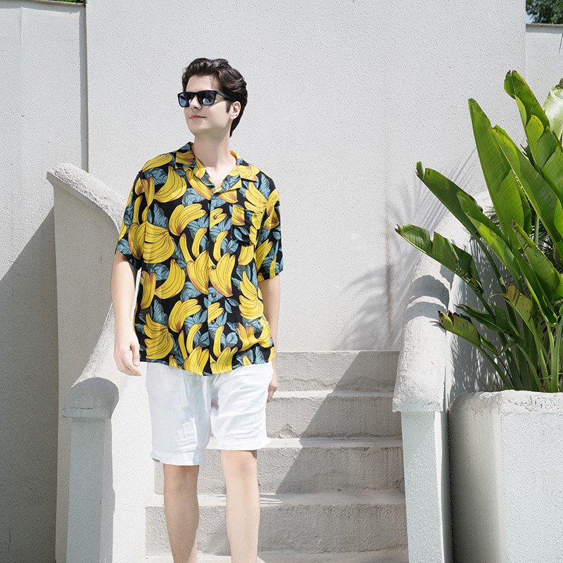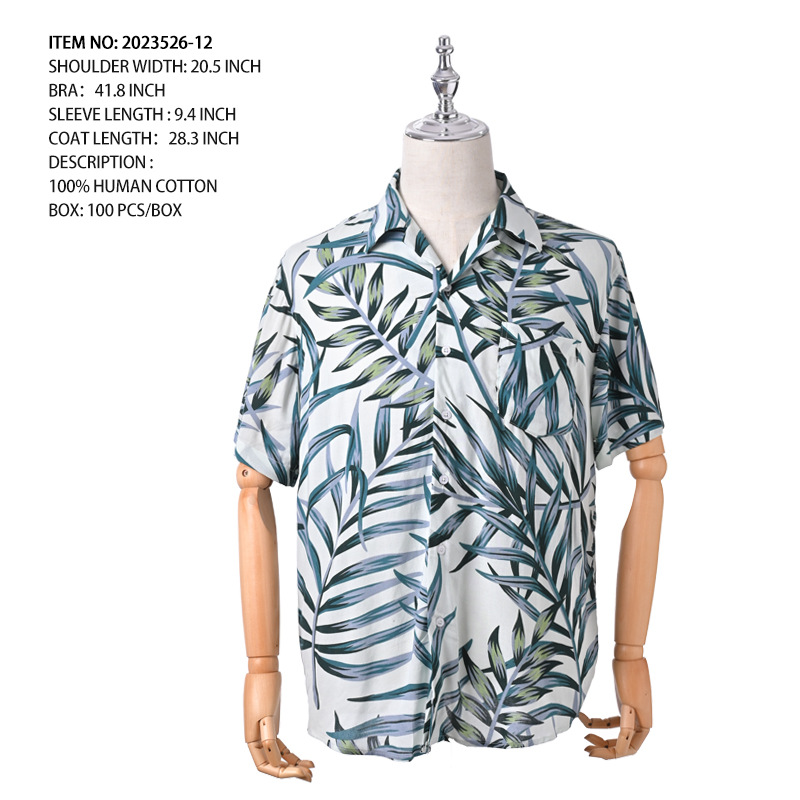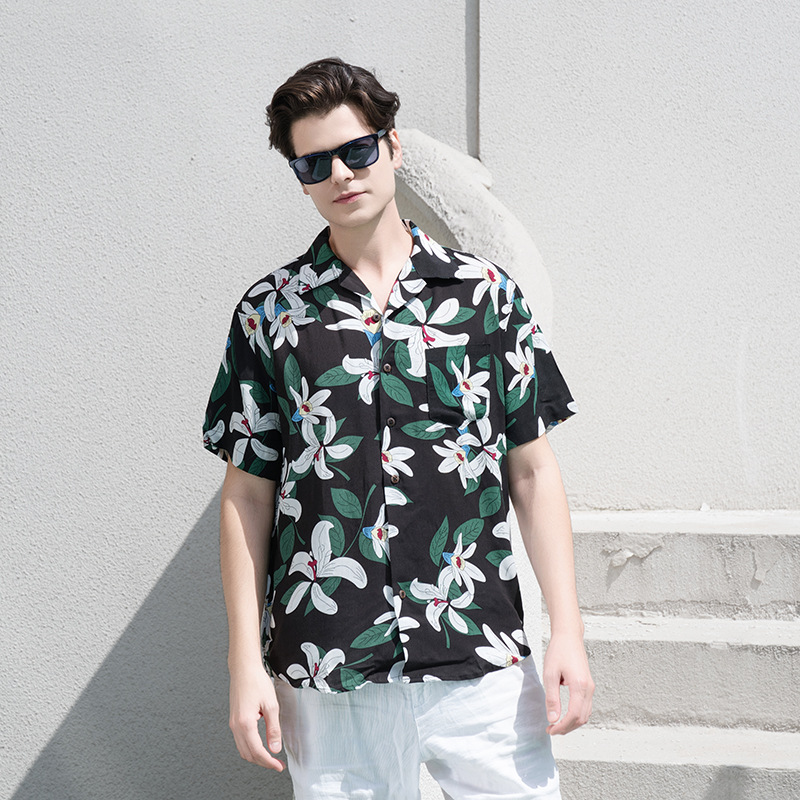 크로스 보더 남성용 하와이안 셔츠 유럽과 미국 레이온 인쇄 대외 무역 비치 셔츠 카디건 반팔 티셔츠 트렌디 한 디자인스토어 가기