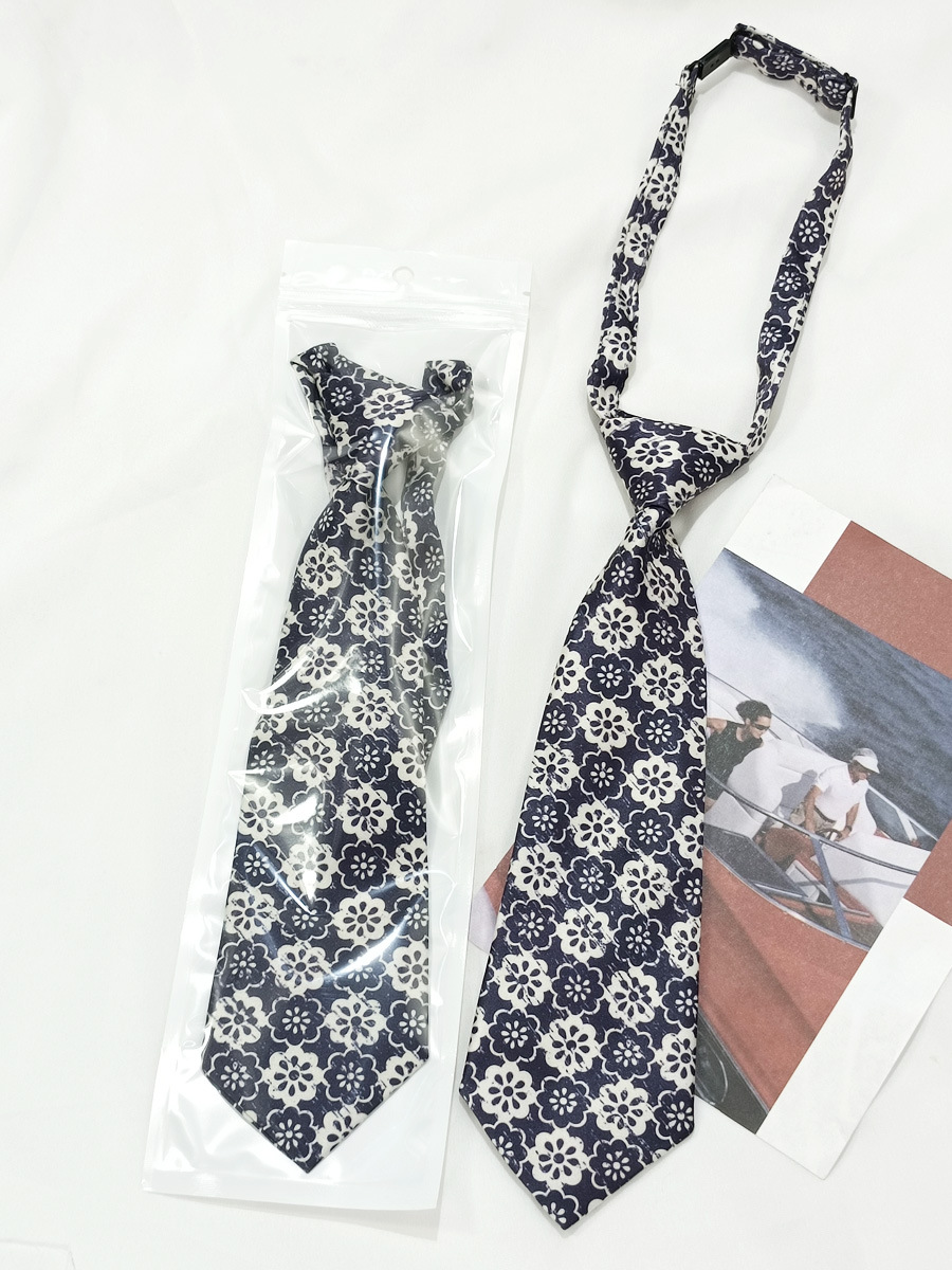 중국 스타일 파란색과 흰색 도자기 예술적 인쇄 짧은 넥타이-무료 여성 장식 빈티지 꽃 인쇄 학생 어린이 사진 사진