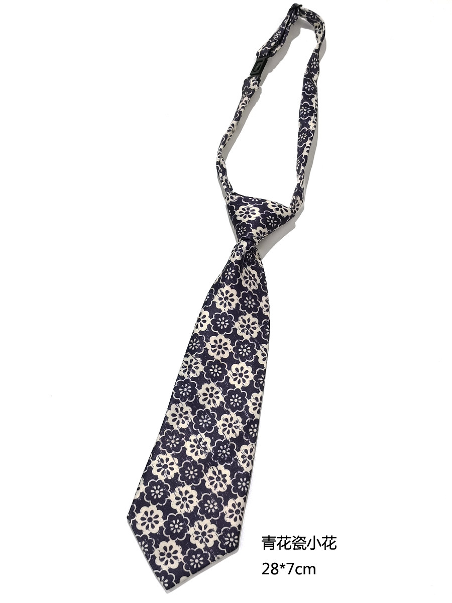 중국 스타일 파란색과 흰색 도자기 예술적 인쇄 짧은 넥타이-무료 여성 장식 빈티지 꽃 인쇄 학생 어린이 사진 사진스토어 가기