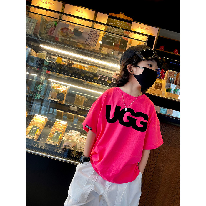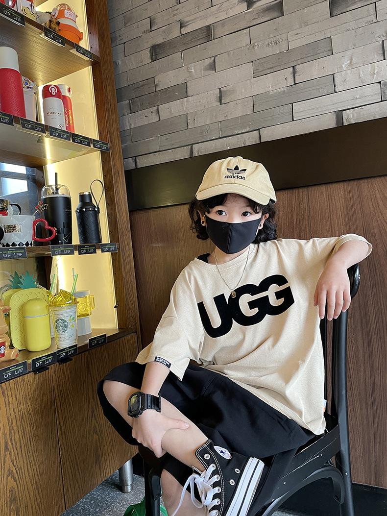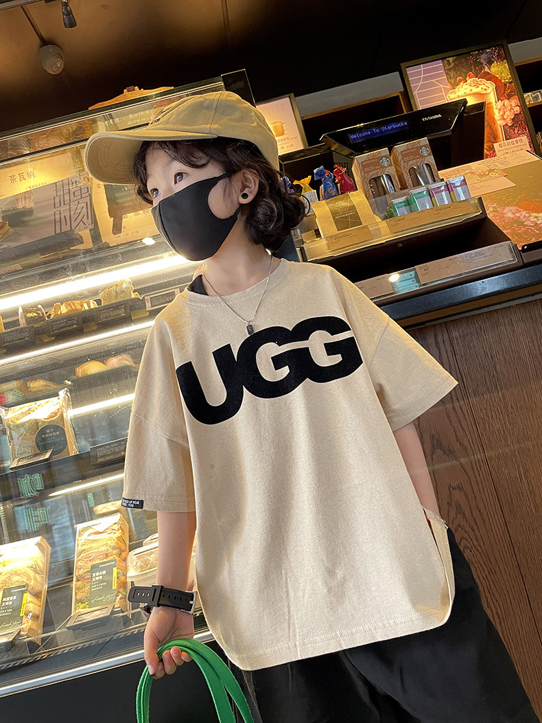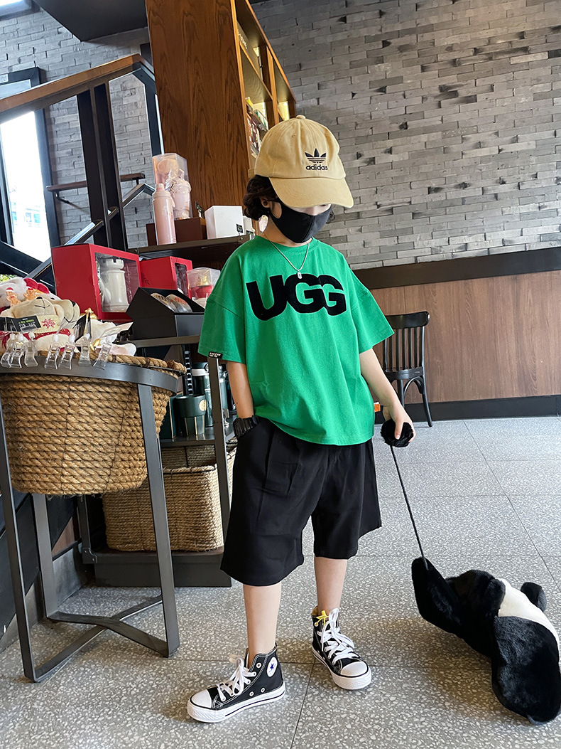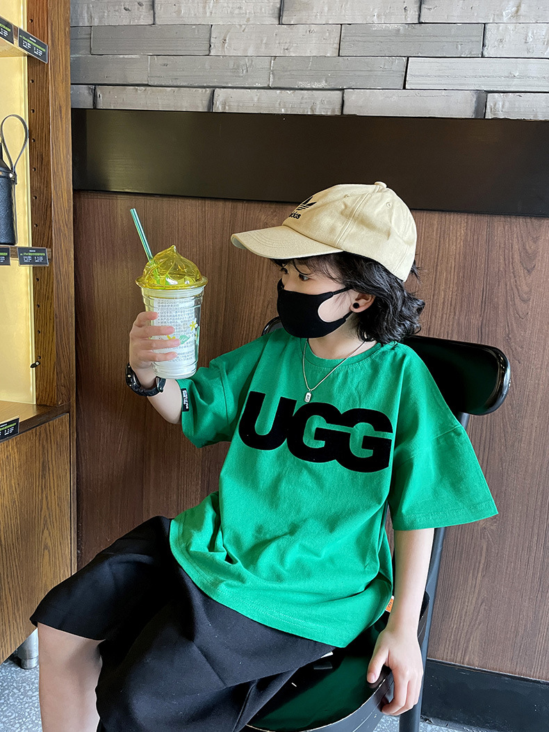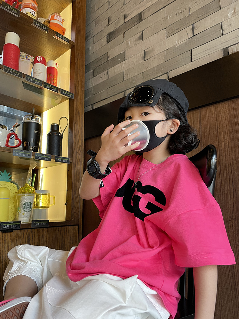 간단한 큰 소년 여름 반팔 티셔츠 220g 한국어 버전 아동면 편지 코트 느슨한 바닥 셔츠스토어 가기