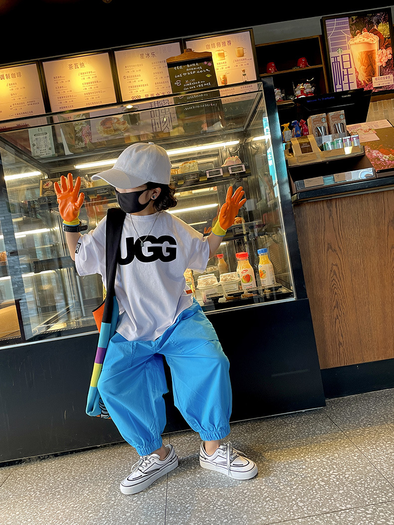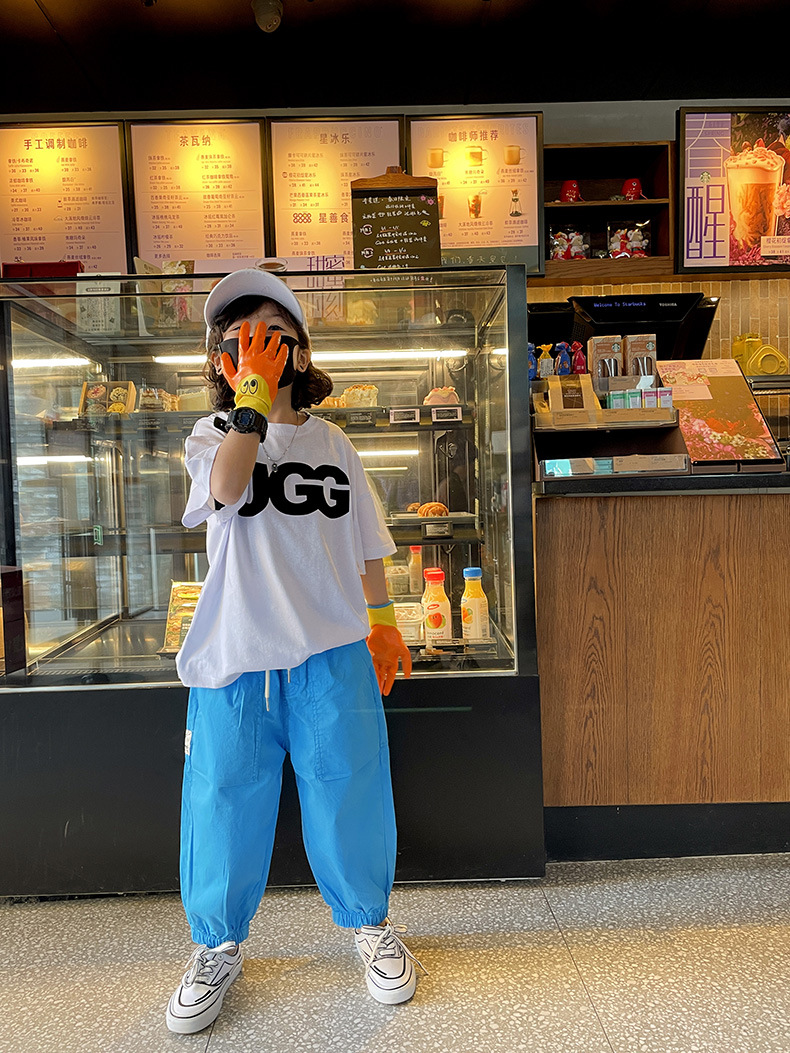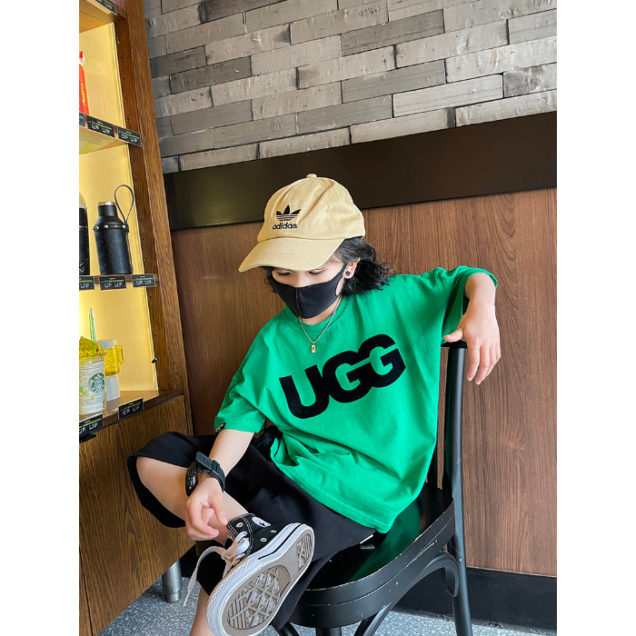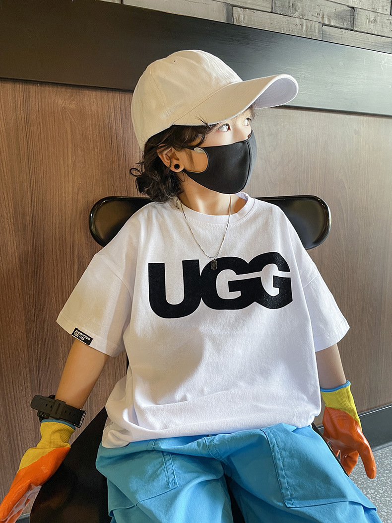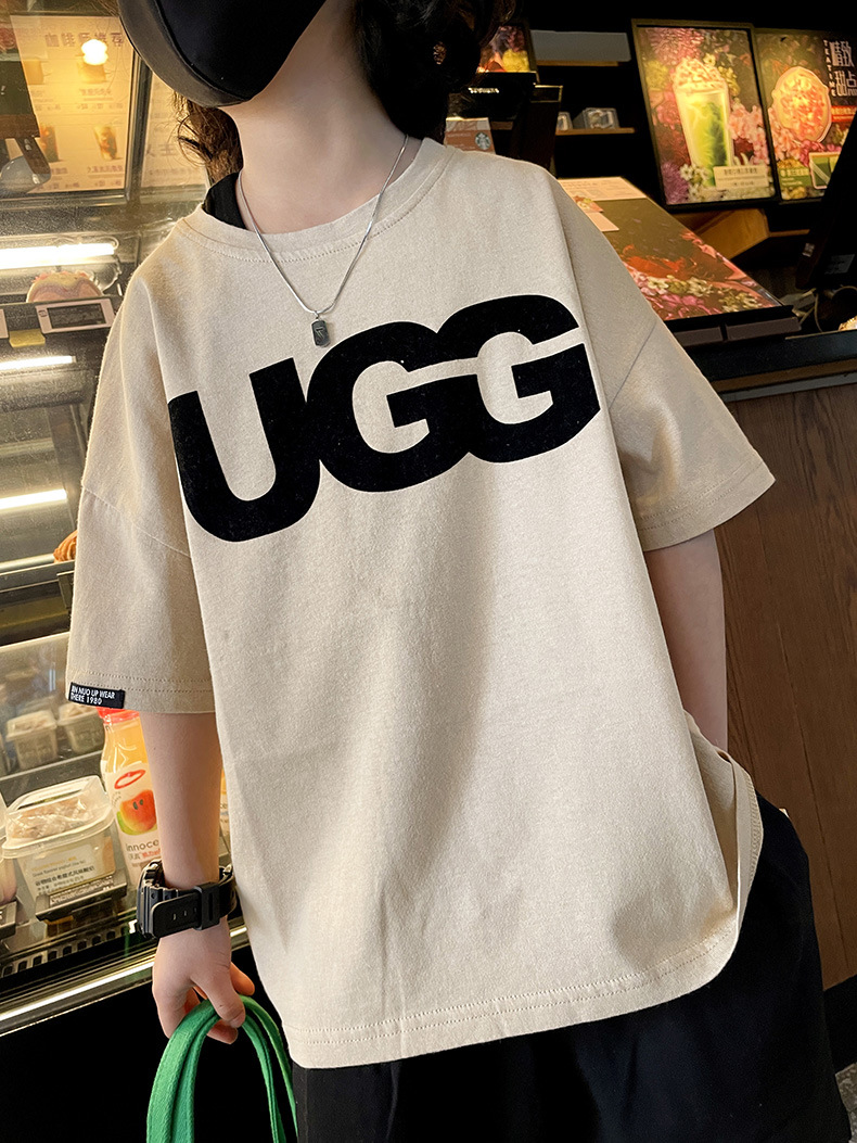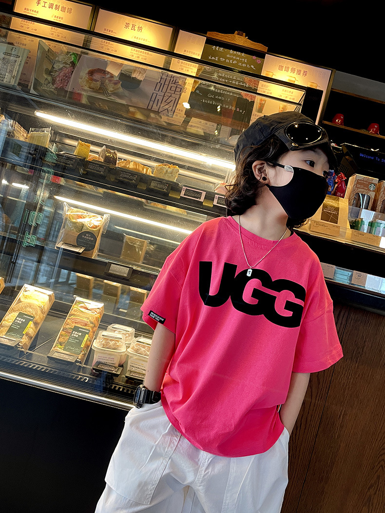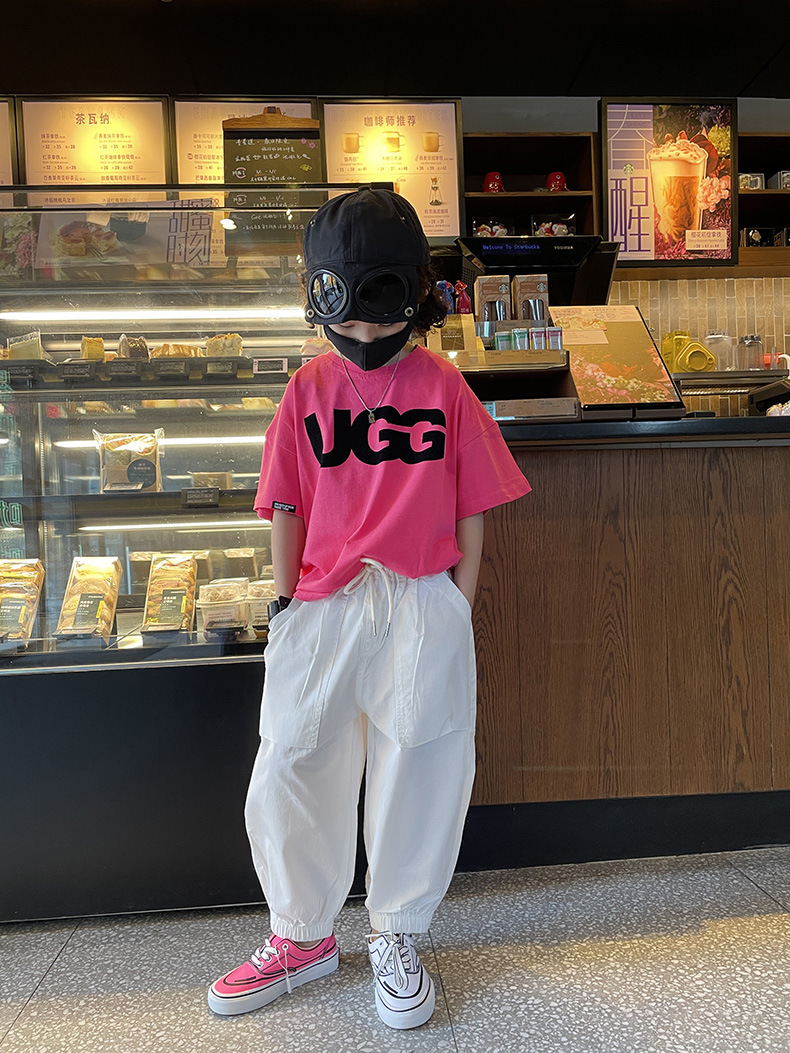 간단한 큰 소년 여름 반팔 티셔츠 220g 한국어 버전 아동면 편지 코트 느슨한 바닥 셔츠스토어 가기