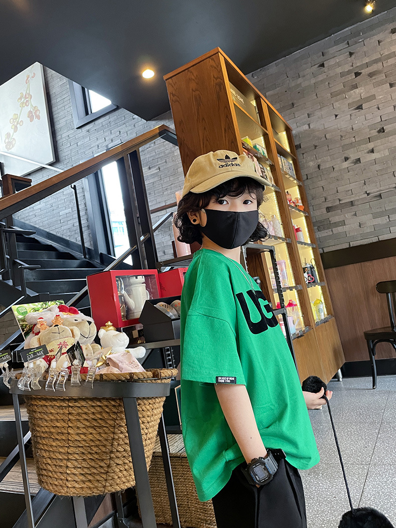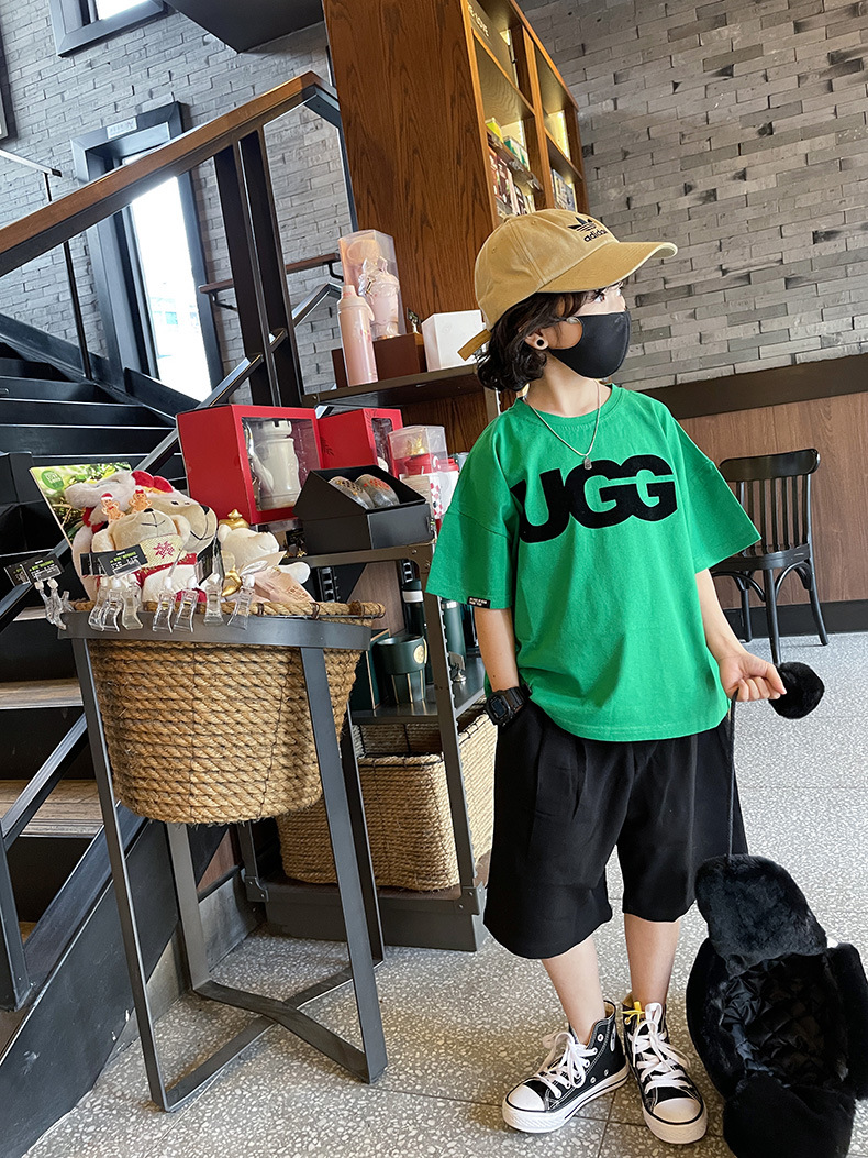 간단한 큰 소년 여름 반팔 티셔츠 220g 한국어 버전 아동면 편지 코트 느슨한 바닥 셔츠