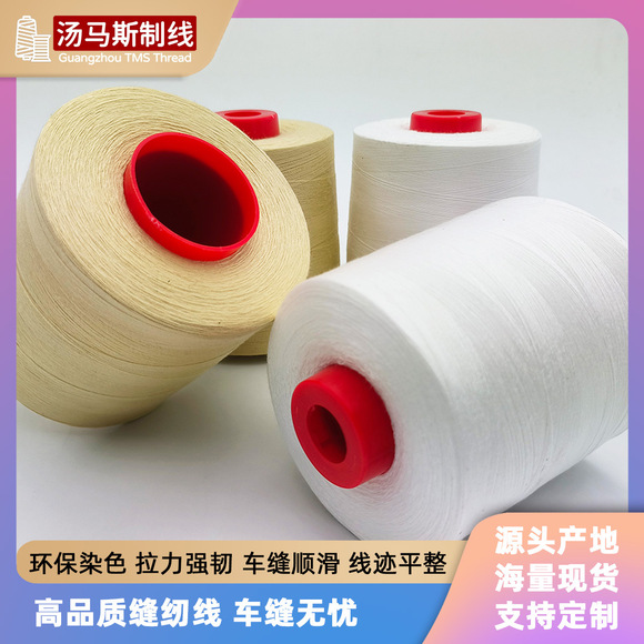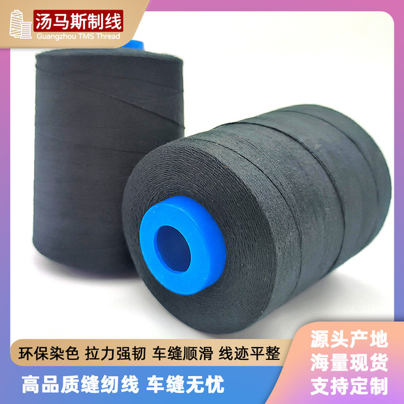 PP纯涤纶线:又叫SP线、PP线、涤纶线、棉线,也是由高强力低延伸的涤纶原料生产制成, 表面有毛丝,耐温130度,高温染色。涤纶原料是所有物料中最能抵受磨擦、干洗、 石磨洗、漂白及其它洗涤剂的材料,其低伸度及低伸缩率,保障了极佳的可缝性,并能防止褶皱和跳针,适用产品范围广泛。