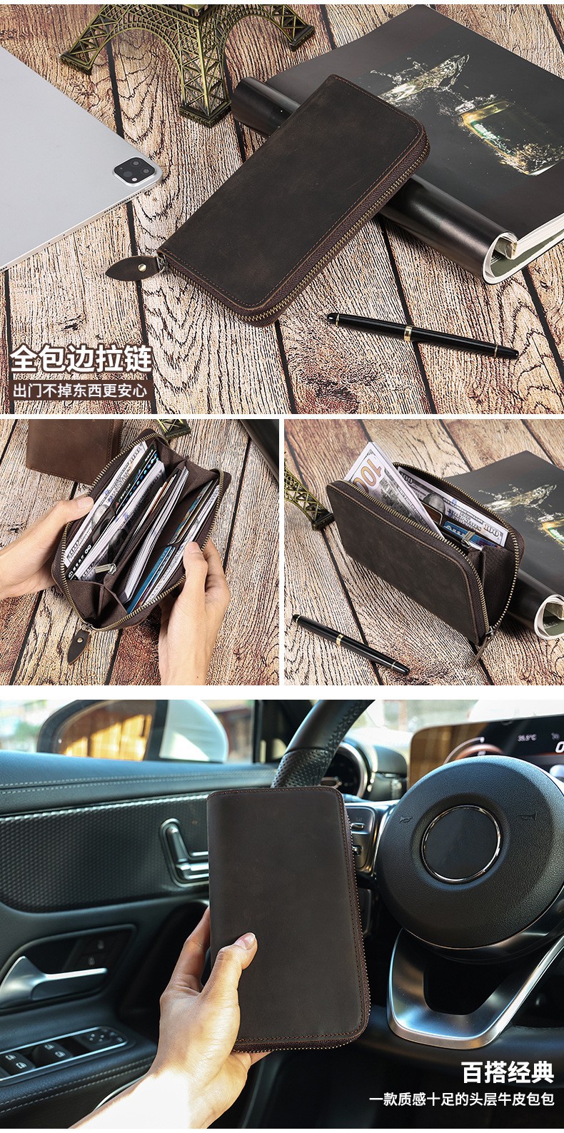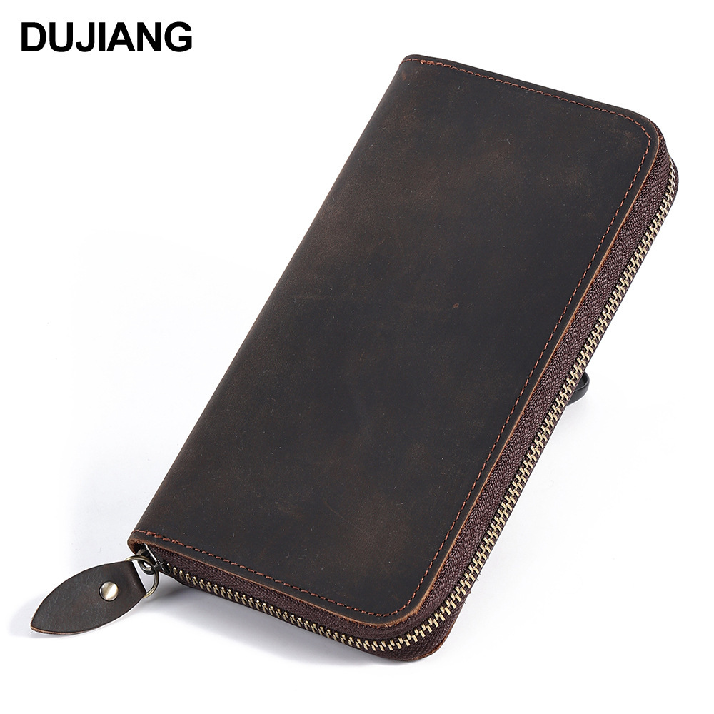 두장 크레이지 홀스킨 지갑, 다기능 남성용 동전 지갑, 천연 가죽 클러치백, 카드 지갑, 해외 수출 인기 상품