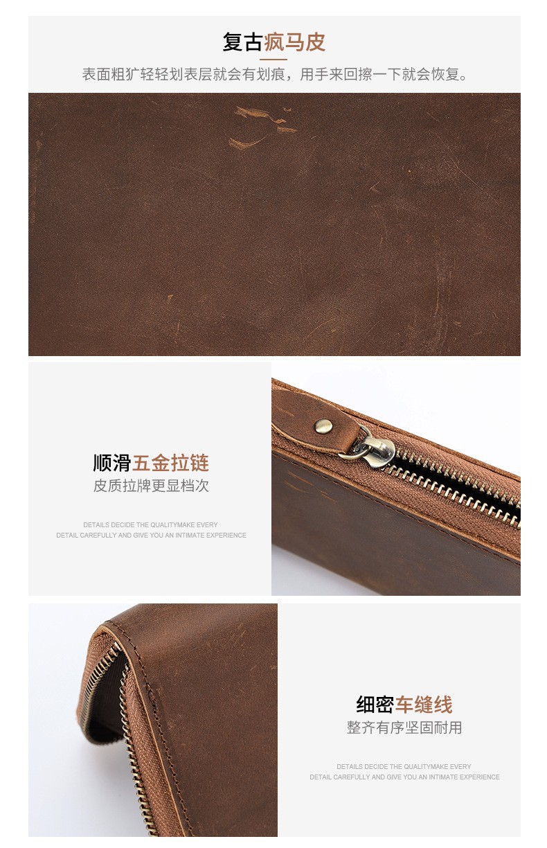 두장 크레이지 홀스킨 지갑, 다기능 남성용 동전 지갑, 천연 가죽 클러치백, 카드 지갑, 해외 수출 인기 상품스토어 가기