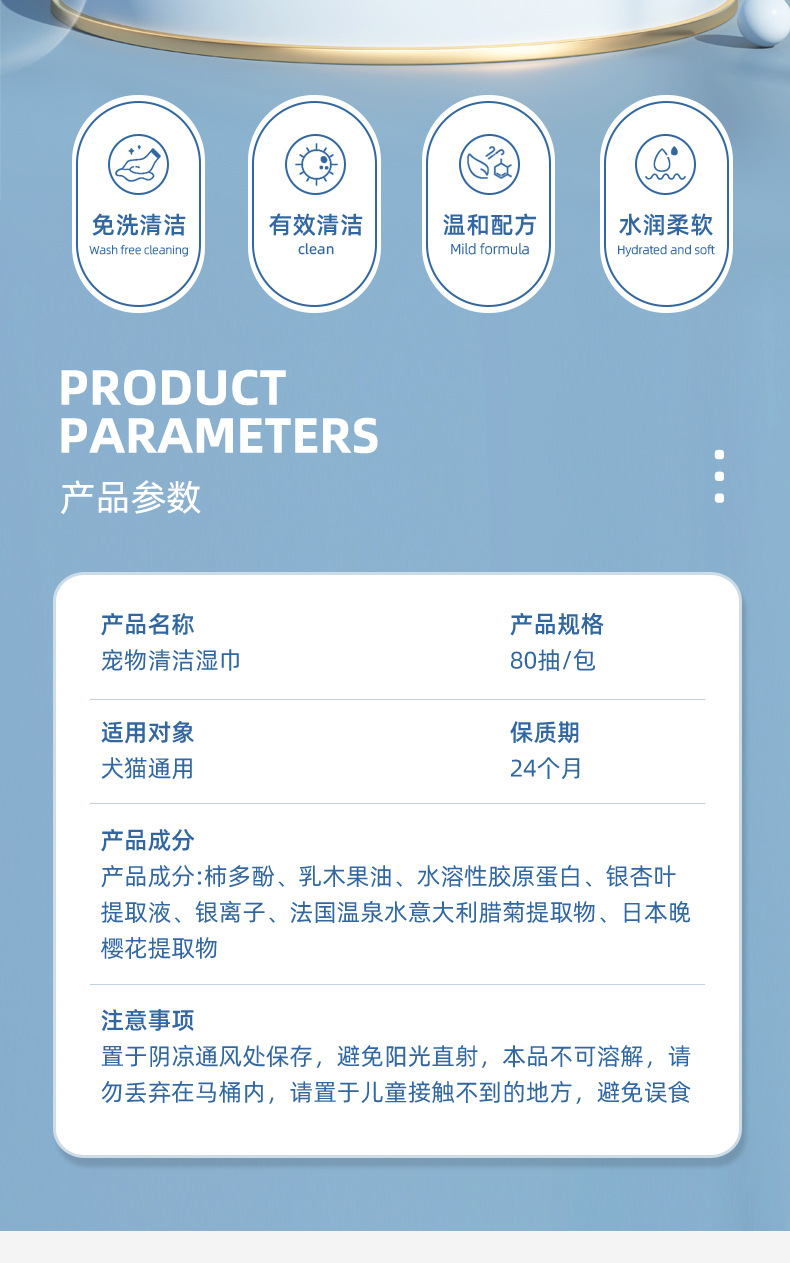 • 영어 애완동물 귀 손가락 물티슈 50개입