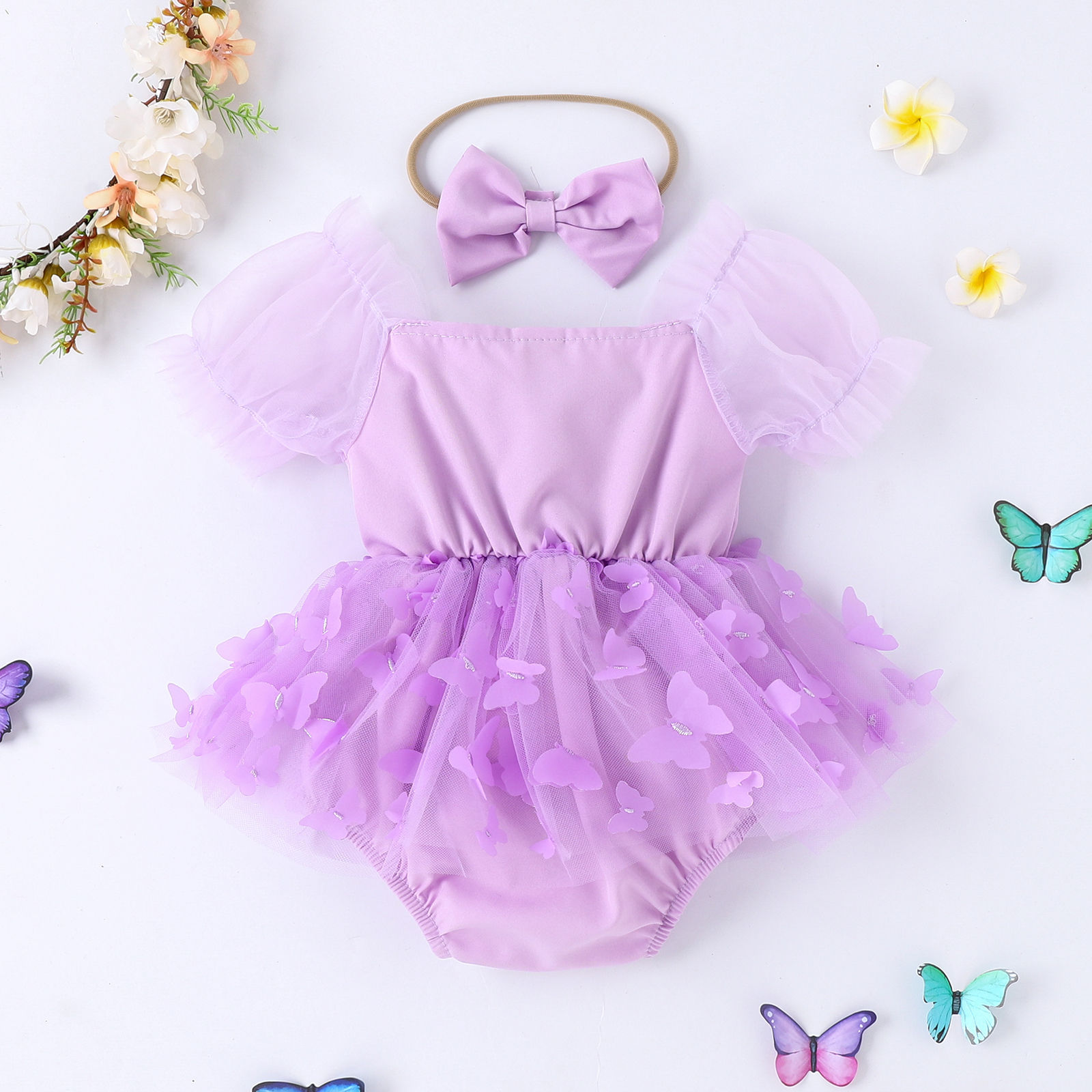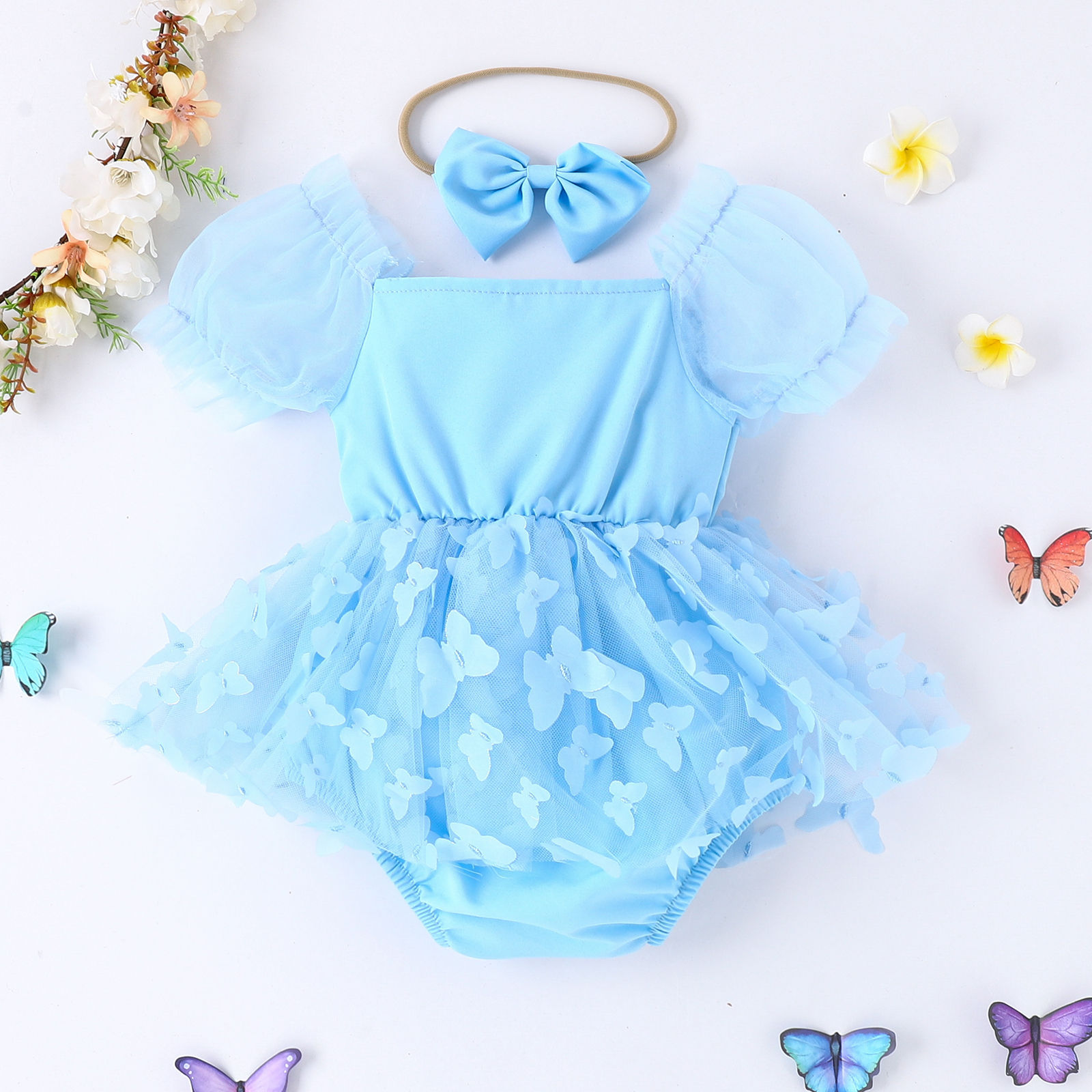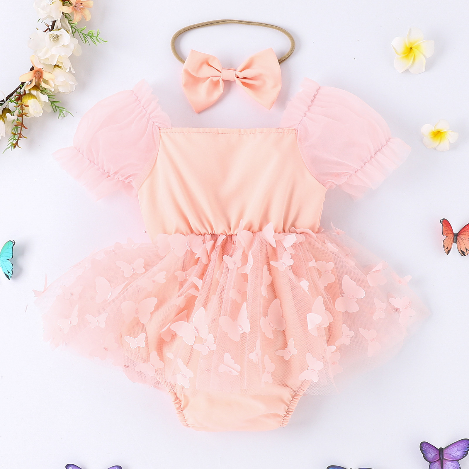 Baopai 아동복 유럽과 미국 아기 소녀의 메쉬 버블 슬리브 스테레오 나비 스커트 포장 방귀 오픈 가랑이 아기와 유아 의류
