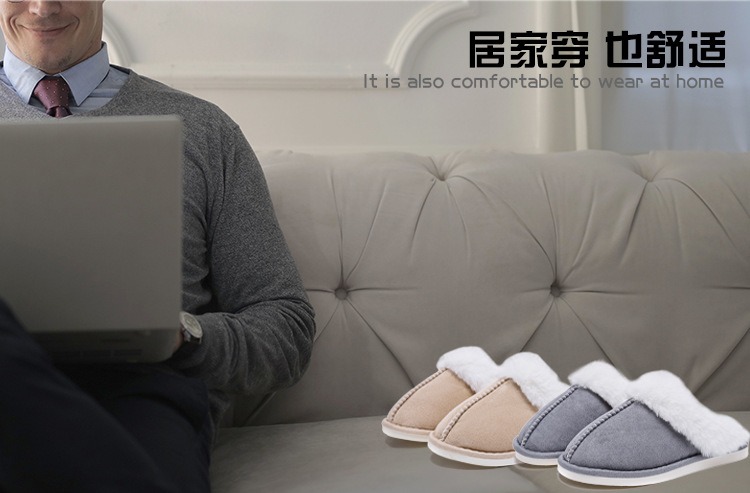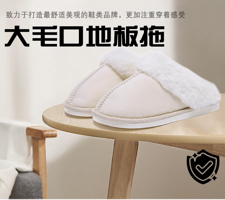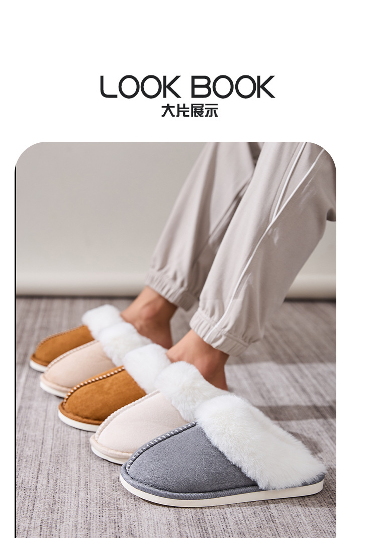커플을 위한 국경을 넘는 인기 도매 플러시 따뜻하고 편안한 면 슬리퍼, 가정용 미끄럼 방지 면 신발, 큰 모피 슬리퍼스토어 가기