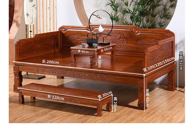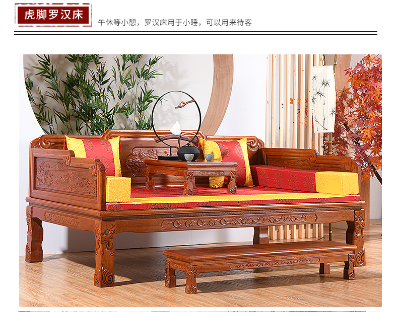 Luohan 침대 새로운 중국식 단단한 나무 소파 침대 의자 소파 세트 3 피스 인도네시아 로즈 우드 밍과 청 클래식 가구스토어 가기