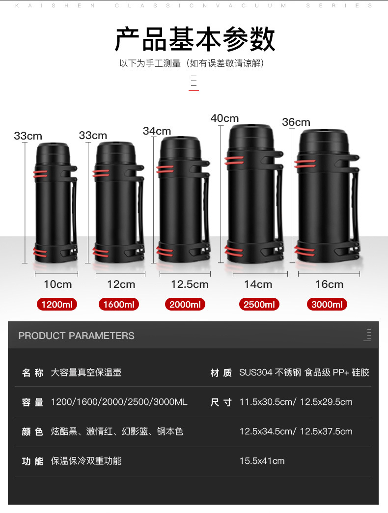 대용량 자동차 여행 냄비 304 스테인레스 스틸 대형 보온병 야외 가정용 선물 열 보존 주전자 조각