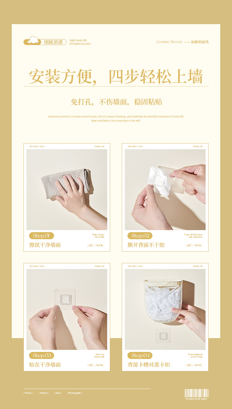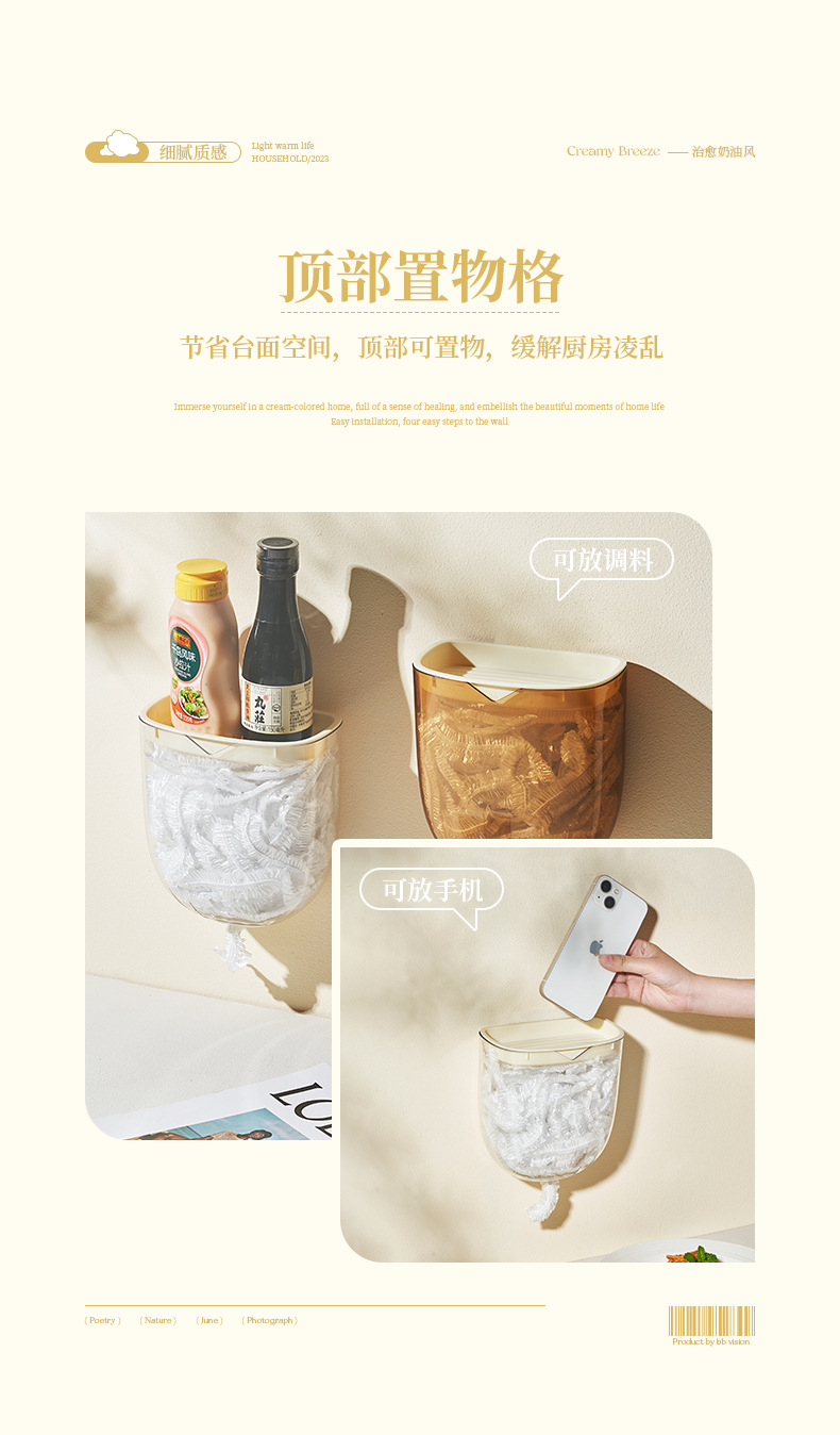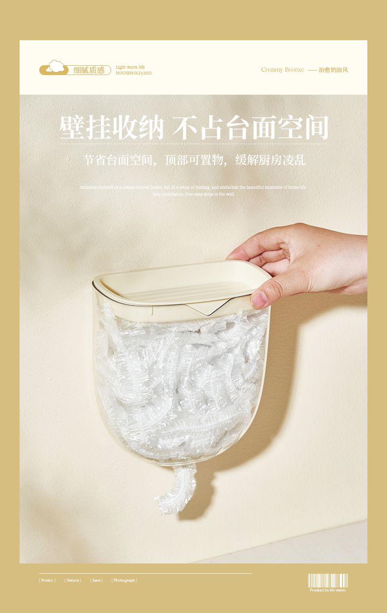 厨房轻奢免打孔壁挂保鲜膜套收纳盒抽取式保鲜袋罩浴帽鞋套整理盒스토어 가기