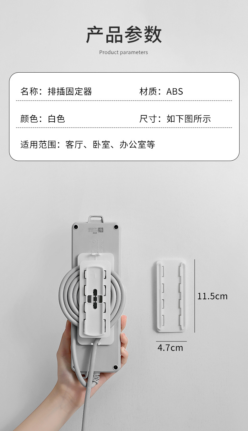 국경을 넘는 새로운 스타일의 멀티탭 고정기, 케이블을 감아서 사용할 수 있는 소켓, 강력하고 흔적이 남지 않는 무타공 벽걸이형, 데스크탑 및 벽면에 설치 가능