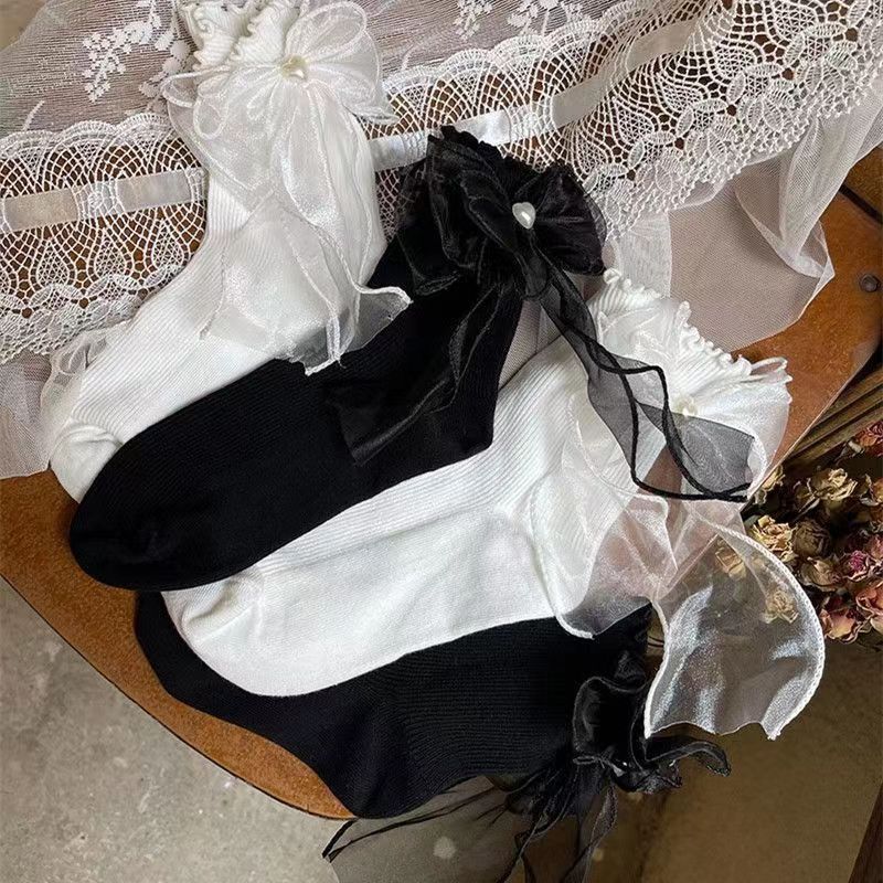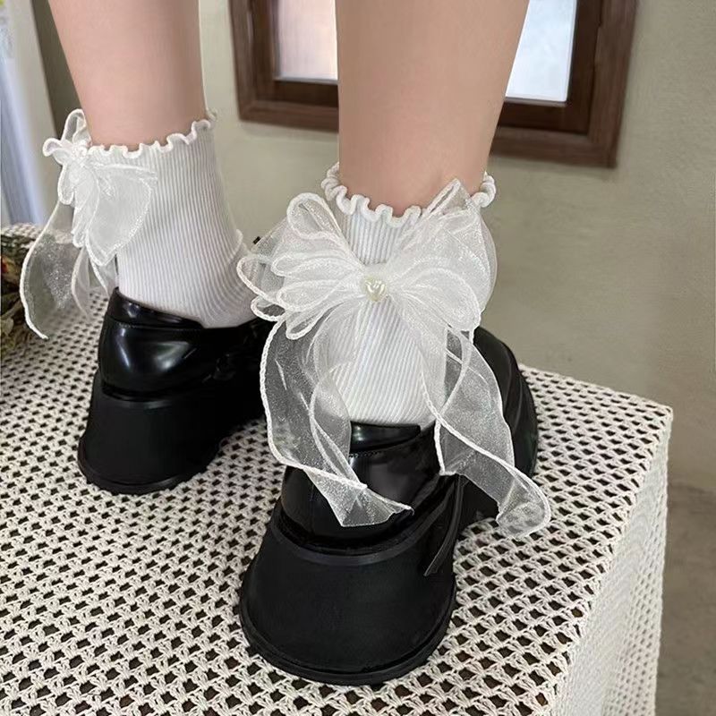 일본풍 달콤한 망사 리본 양말 소녀 스타일 봄 여름 하트 로리타 귀여운 jk 학생 스타일