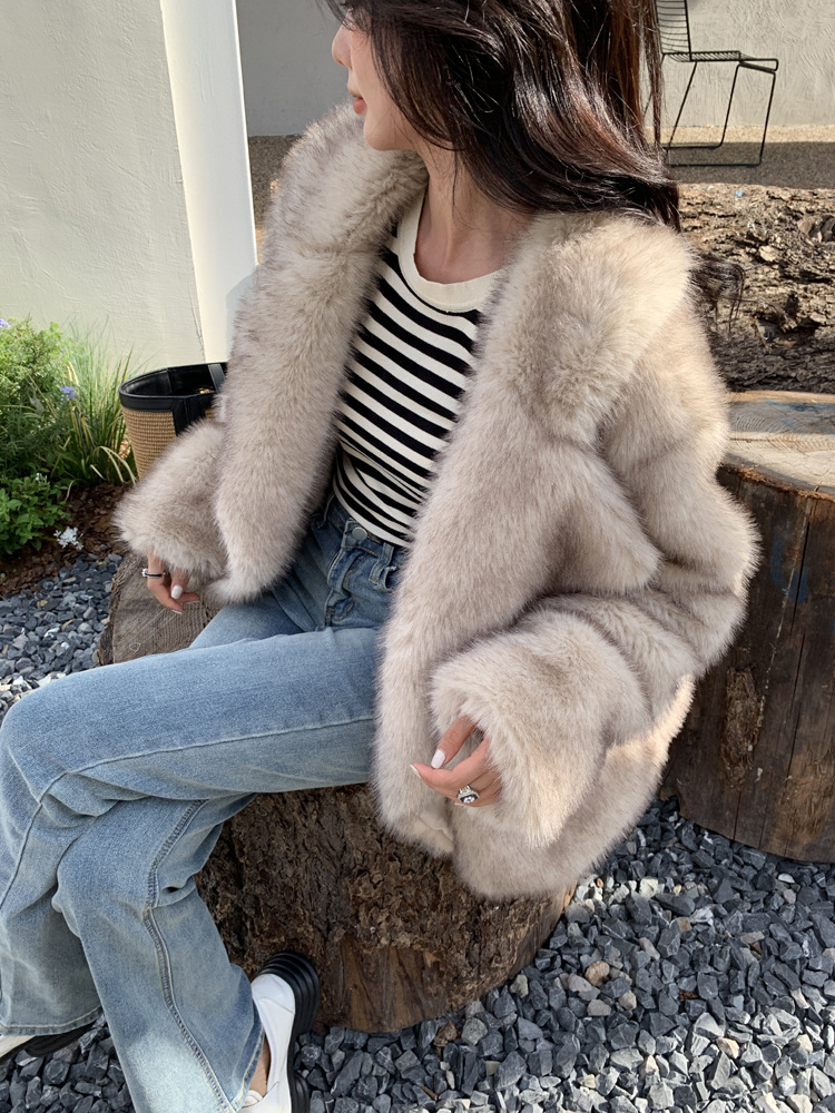 재고 모피 코트 여자의 중간 길이 느슨한 편안한 모든 경기 유행 세트 큰 옷깃 인조 여우 모피 코트스토어 가기