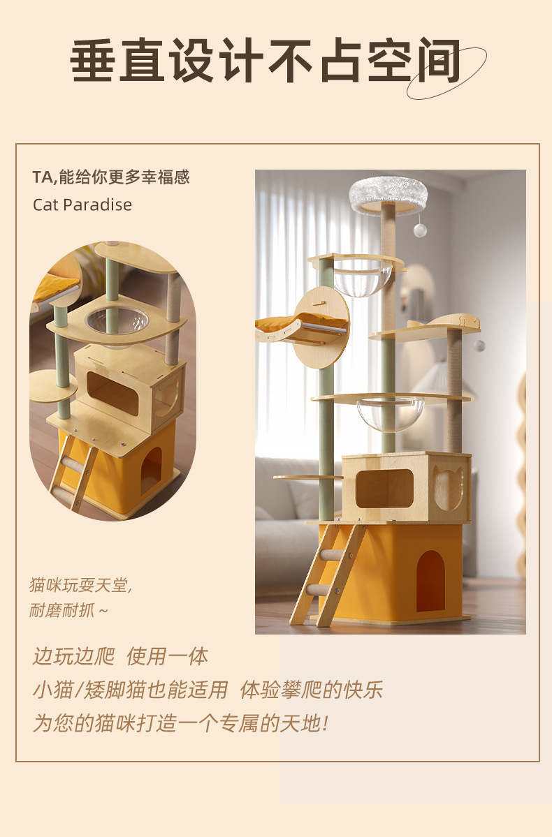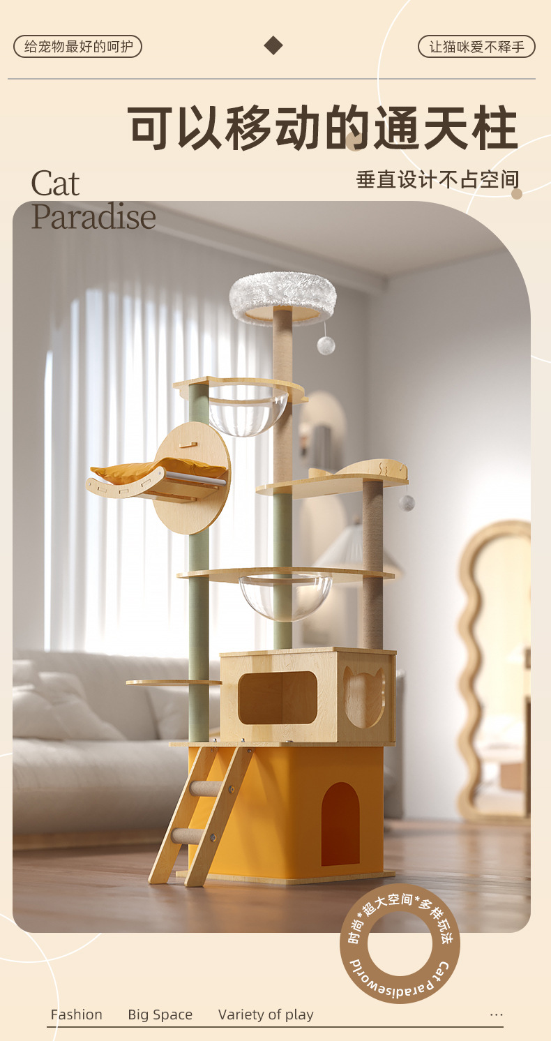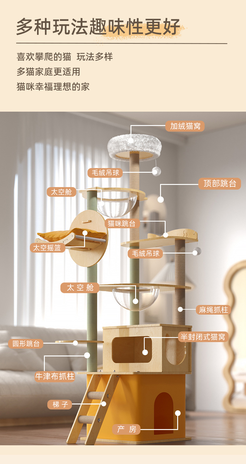 유상 대나무 나무 색 나무 고양이 등반 랙 대형 애완 동물 둥지 사계절 유니버설 고양이 생산실 대외 무역 공간 캡슐 고양이 등반 랙스토어 가기