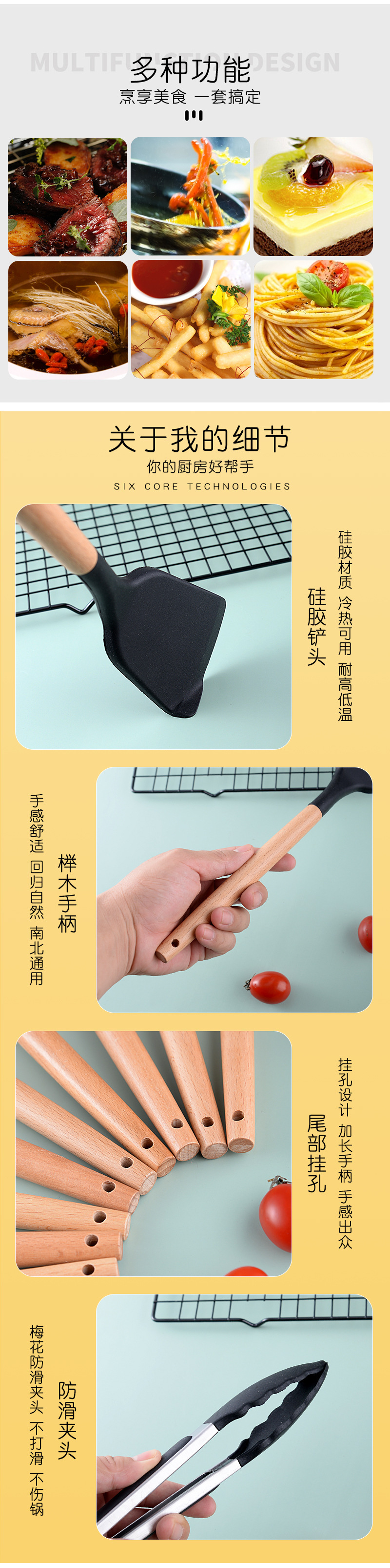 나무 손잡이 실리콘 삽 수세미 가정용 볶음 삽 주방 용품 수세미 보호 붙지 않는 팬 프라이팬 삽 프라이팬 스푼