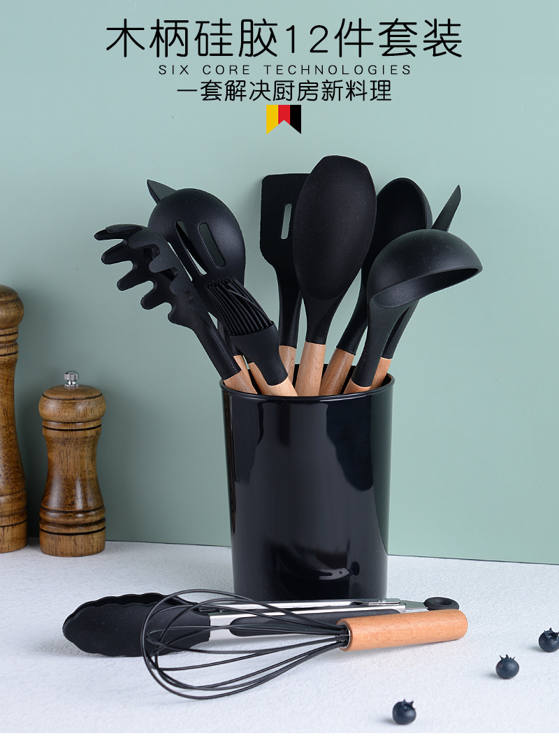 나무 손잡이 실리콘 삽 수세미 가정용 볶음 삽 주방 용품 수세미 보호 붙지 않는 팬 프라이팬 삽 프라이팬 스푼스토어 가기