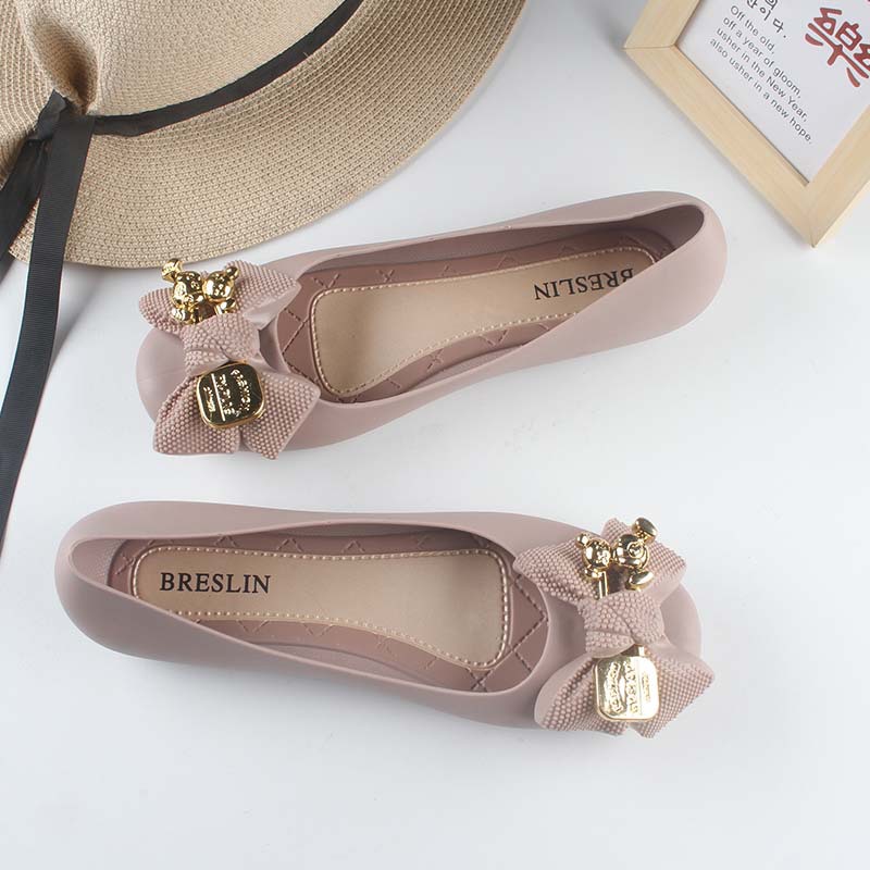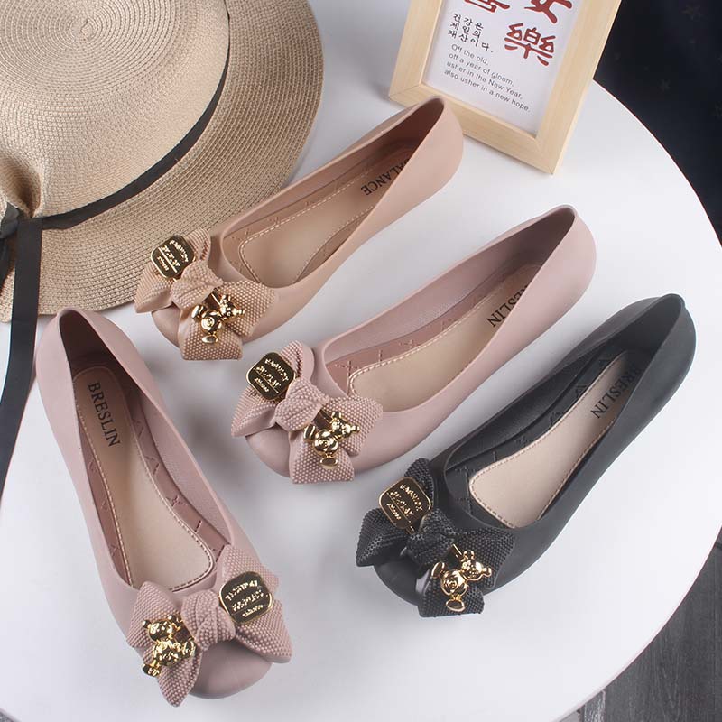 새로운 여성 샌들 크로스 보더 솔리드 컬러 플랫 유행 버클 보우 여름 캐주얼 라운드 토 샌들스토어 가기