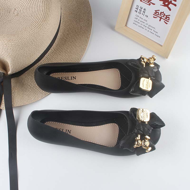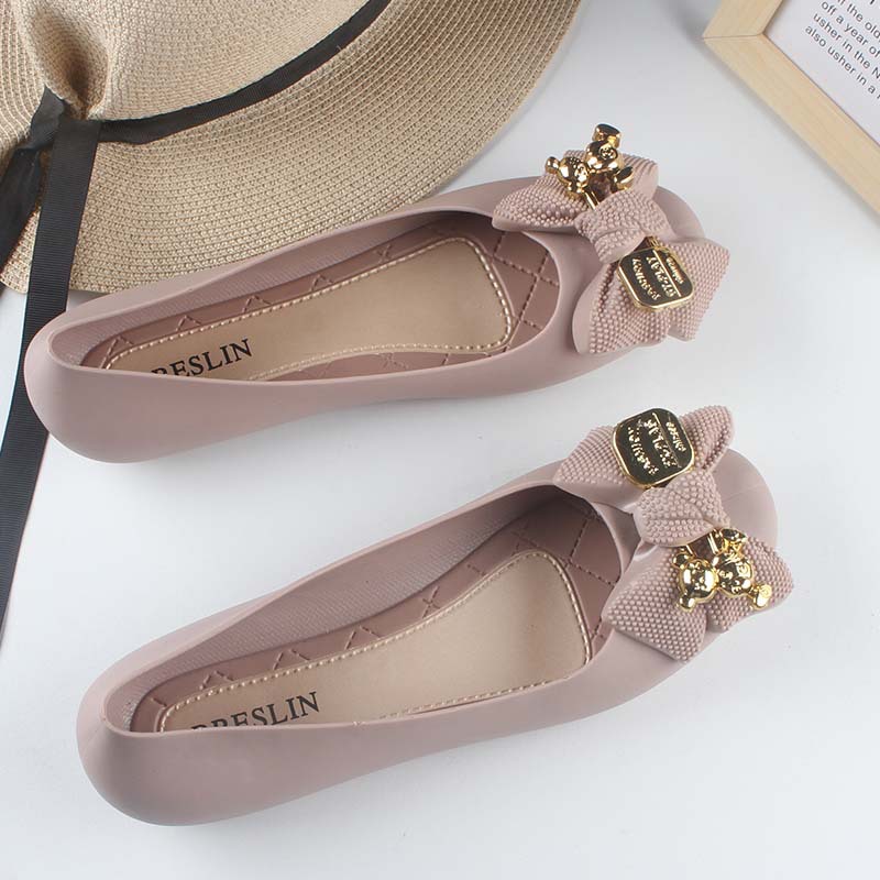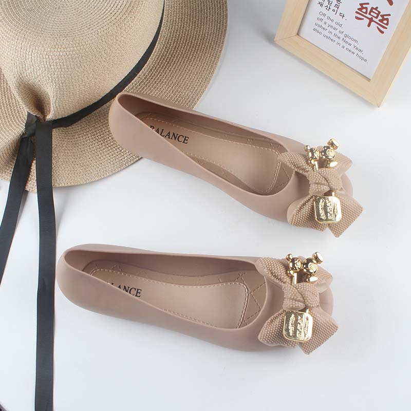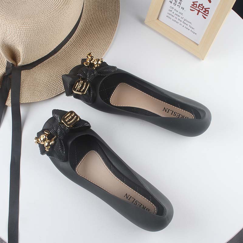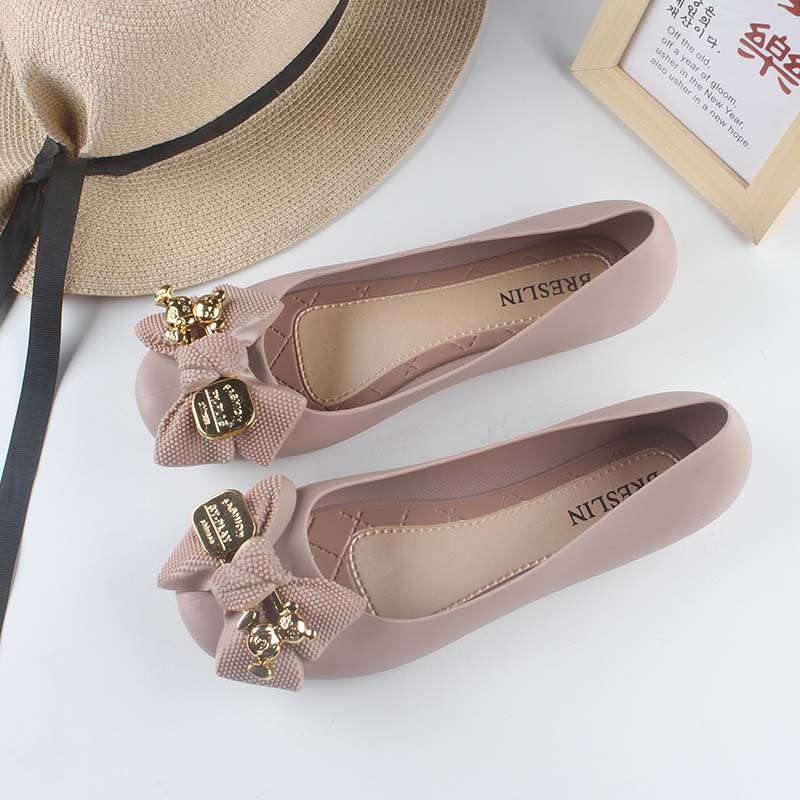 새로운 여성 샌들 크로스 보더 솔리드 컬러 플랫 유행 버클 보우 여름 캐주얼 라운드 토 샌들