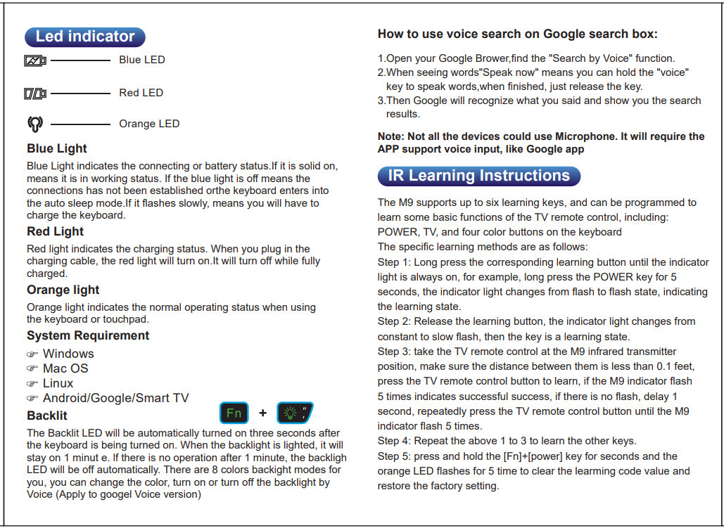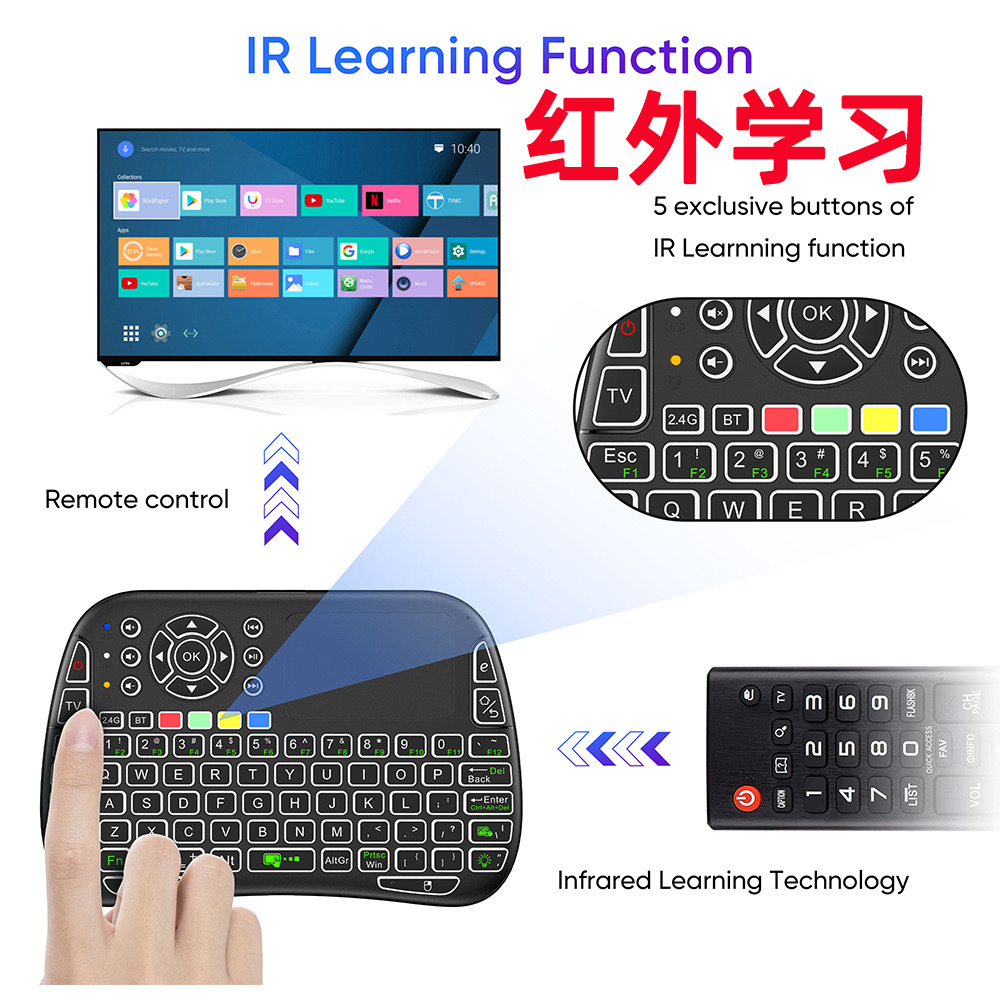 M9 블루투스 무선 듀얼 모드 터치 음성 적외선 학습 원격 제어 미니 충전 다채로운 백라이트 플라잉 마우스 키보드