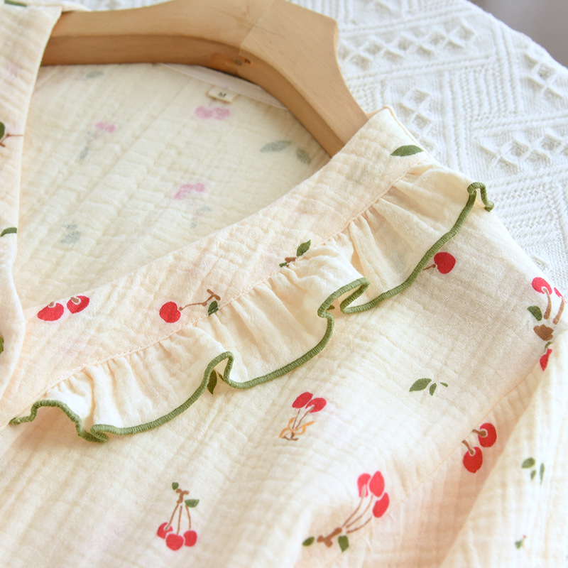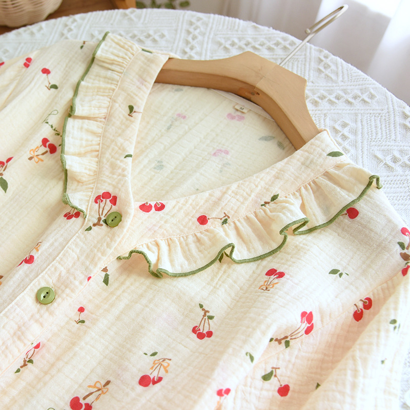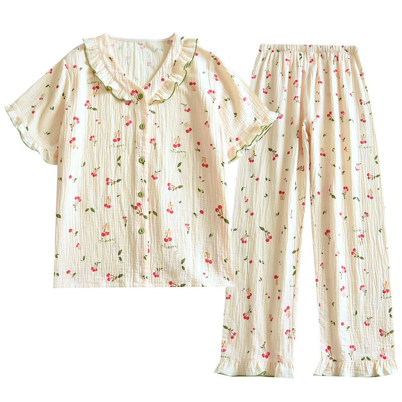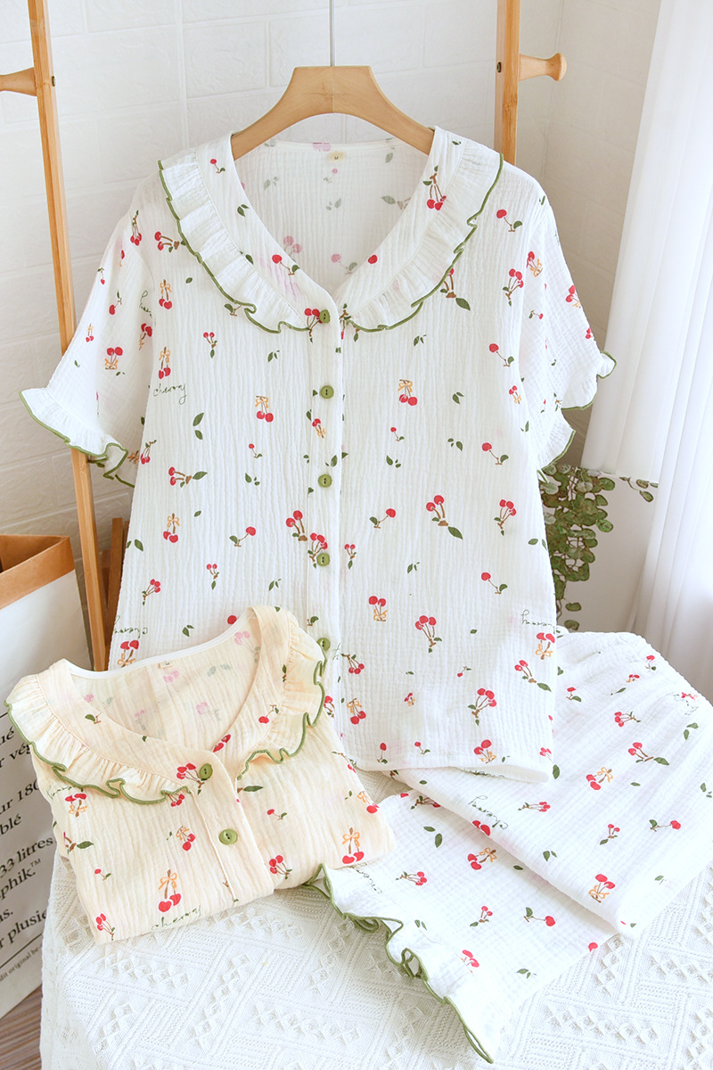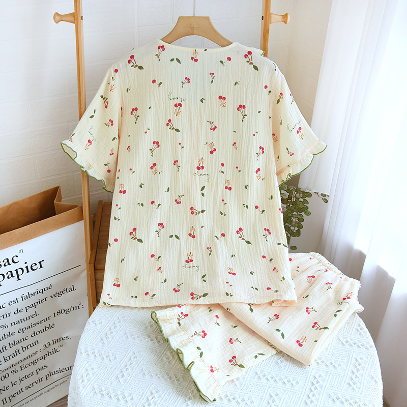 여자의 가정 옷 새로운 반팔 바지 면사 달콤한 체리 여름 느슨한 잠옷 세트 편안한 면 홈