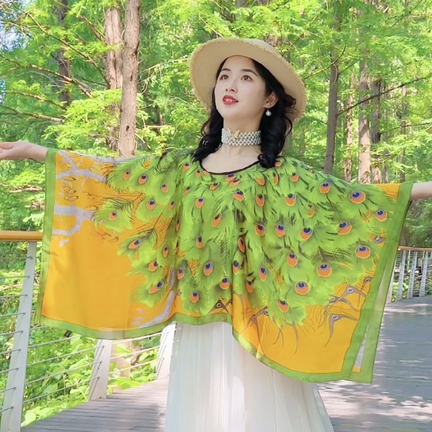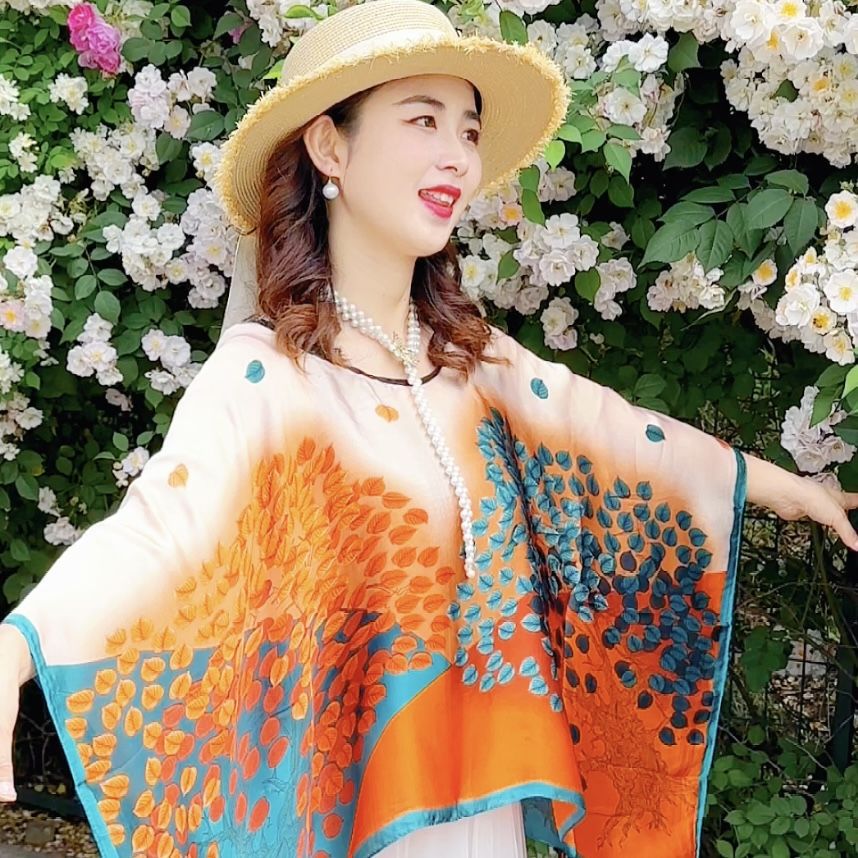 [와이 이] 110*110cm 풀오버 터틀넥 대형 사각 숄 외국식 새틴 여름 자외선 차단제 숄 여성