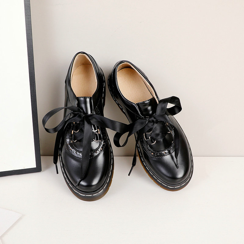 봄과 가을 새로운 여성 신발 영국 복고풍 마틴 부츠 블랙 학생 예술 아카데미 스타일 작은 가죽 신발 여성의 유행 신발스토어 가기