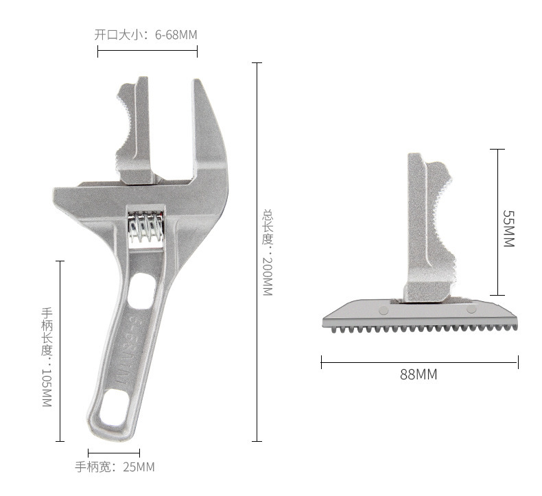 욕실 렌치 공구 다기능 짧은 손잡이 대형 개방 수리 보드 배수 파이프 에어컨 조절 식 개방 렌치