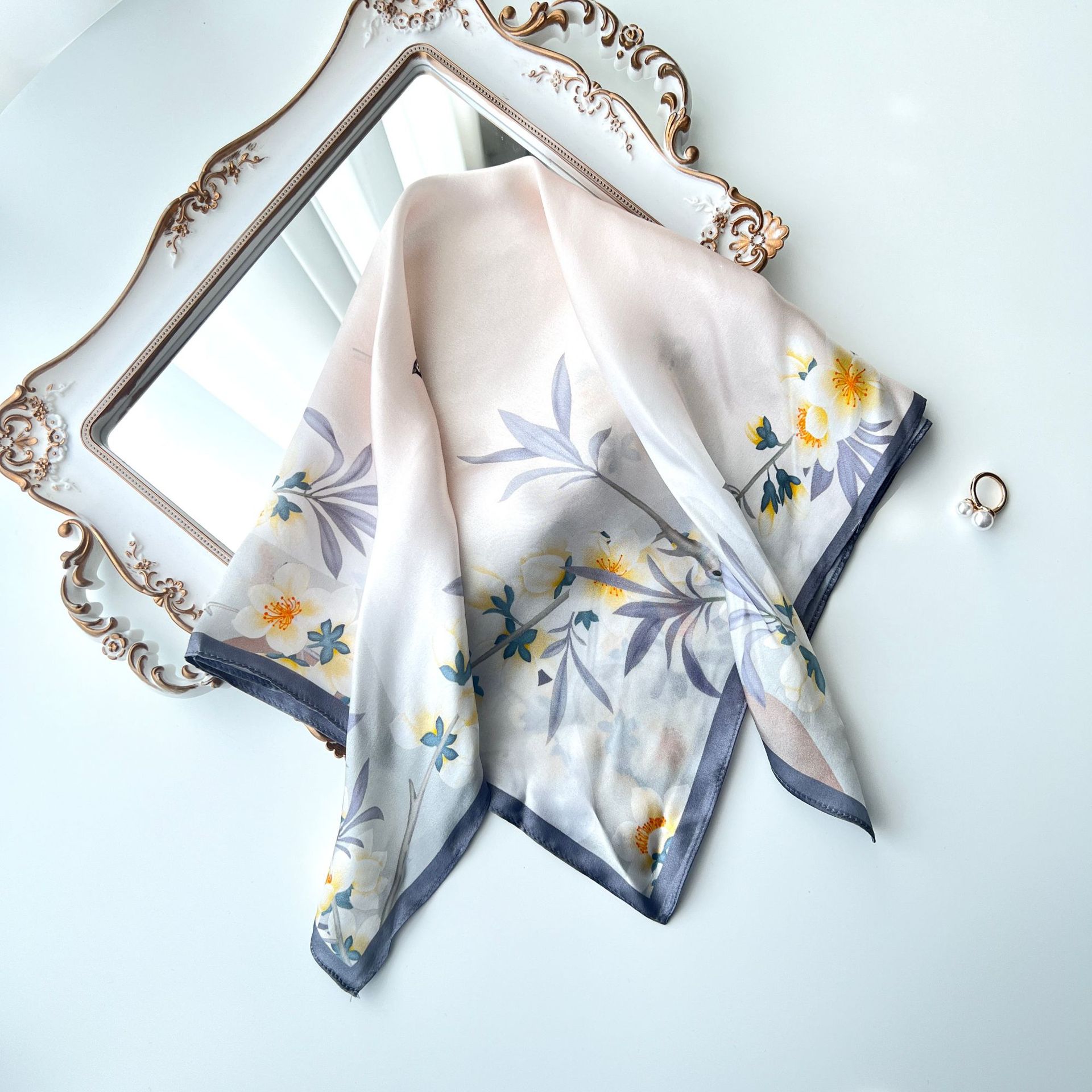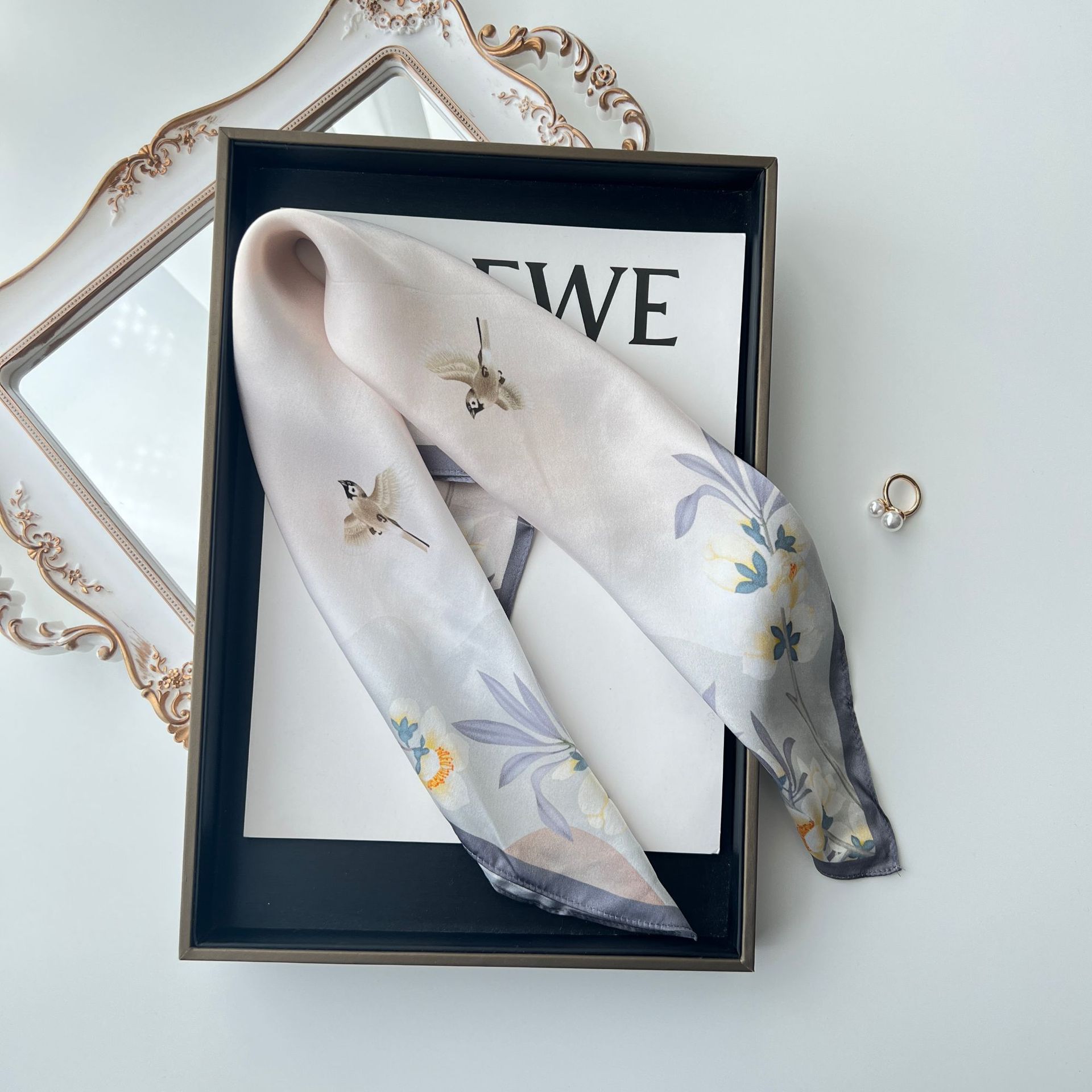 베이지 봄과 가을 여름 모든 매치 뽕나무 실크 스카프 여성용 작은 사각 스카프 장식 실크 선물 작은 스카프 얇은 스카프스토어 가기