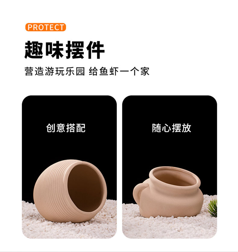 도자기 둥지 어항 도자기 항아리 대피소 집 조경 돌 삼호 쉼터 구멍 사육 항아리 물 잔디 새우 집 새우 둥지 새우 도자기 항아리