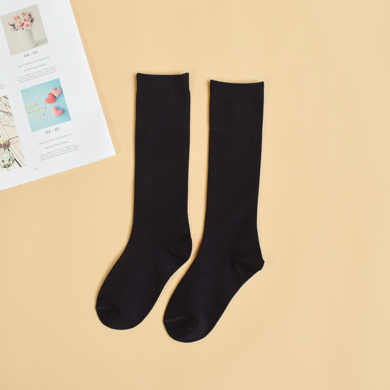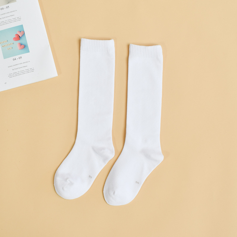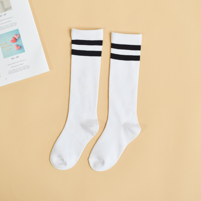 어린이 스타킹면 화이트 2 바 봄과 가을 여름 소년 소녀 반 컷 학생 검은 무릎 길이 종아리 양말