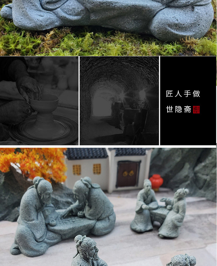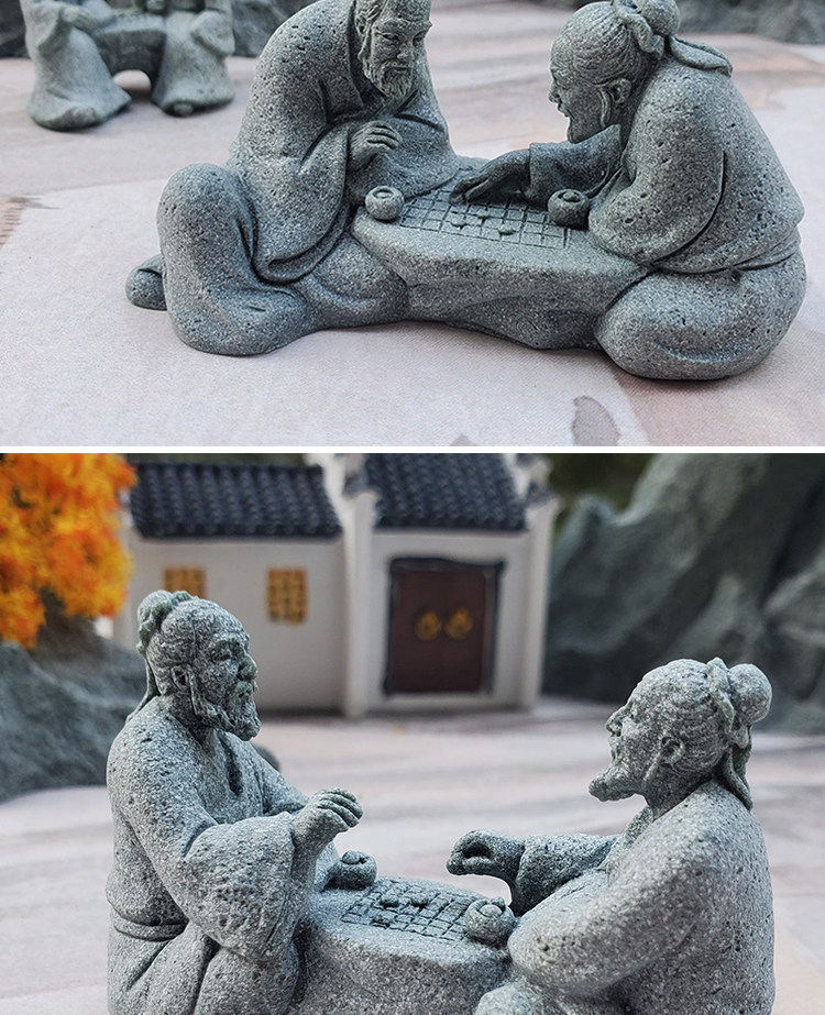 7L8K 더블 체스 노인 작은 장식품 분재 그림 체스 세인트 어항 조경 낚시 남자 바위 물 풍경 어부스토어 가기