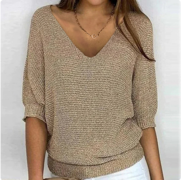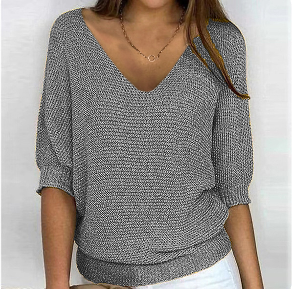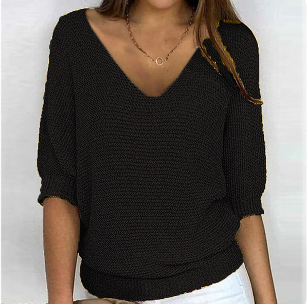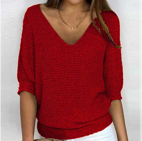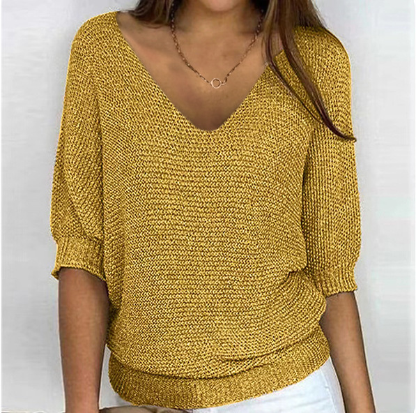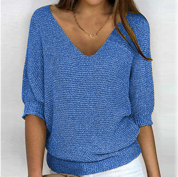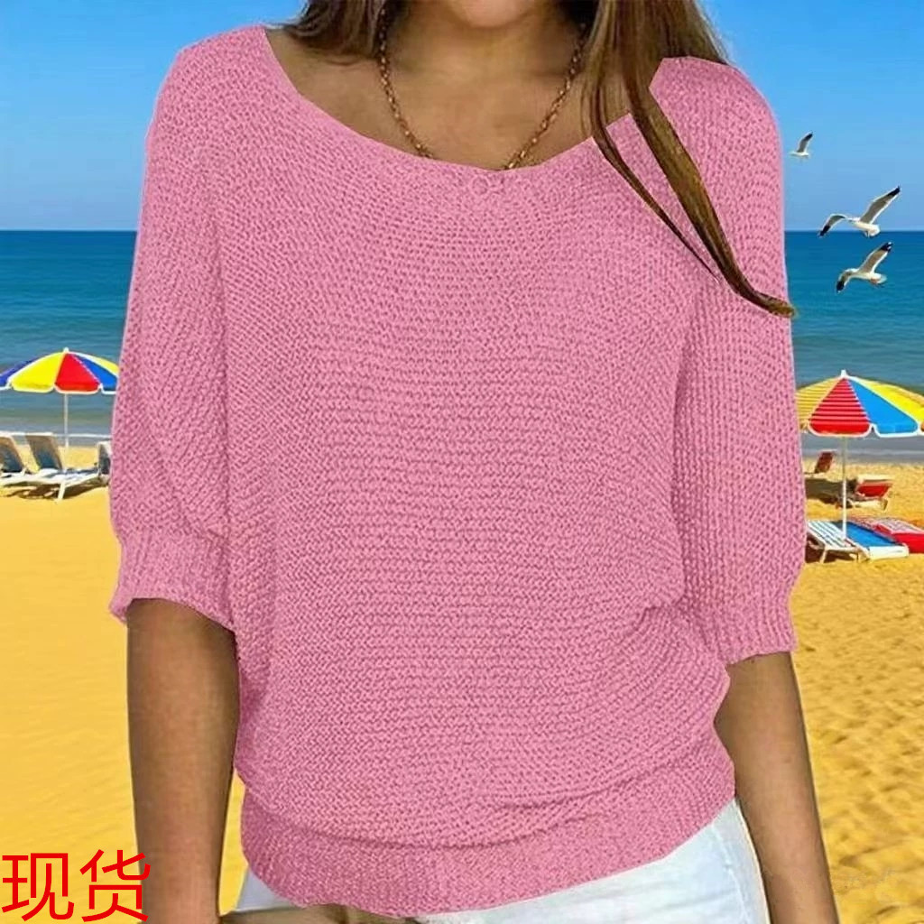 2025 새로운 러시아 AliExpress Wish 솔리드 컬러 라운드 넥 스웨터 여성 7부 소매 탑 에어컨 셔츠 재고 있음
