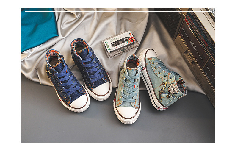 브랜드 캔버스 신발 아동 신발 소년 데님 2024 새로운 스타일 소녀의 다목적 캐주얼 신발 중대형 아동 운동화스토어 가기