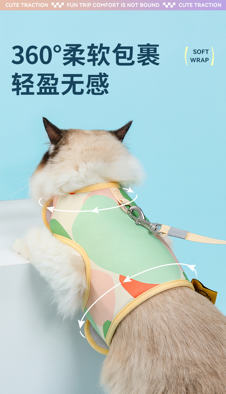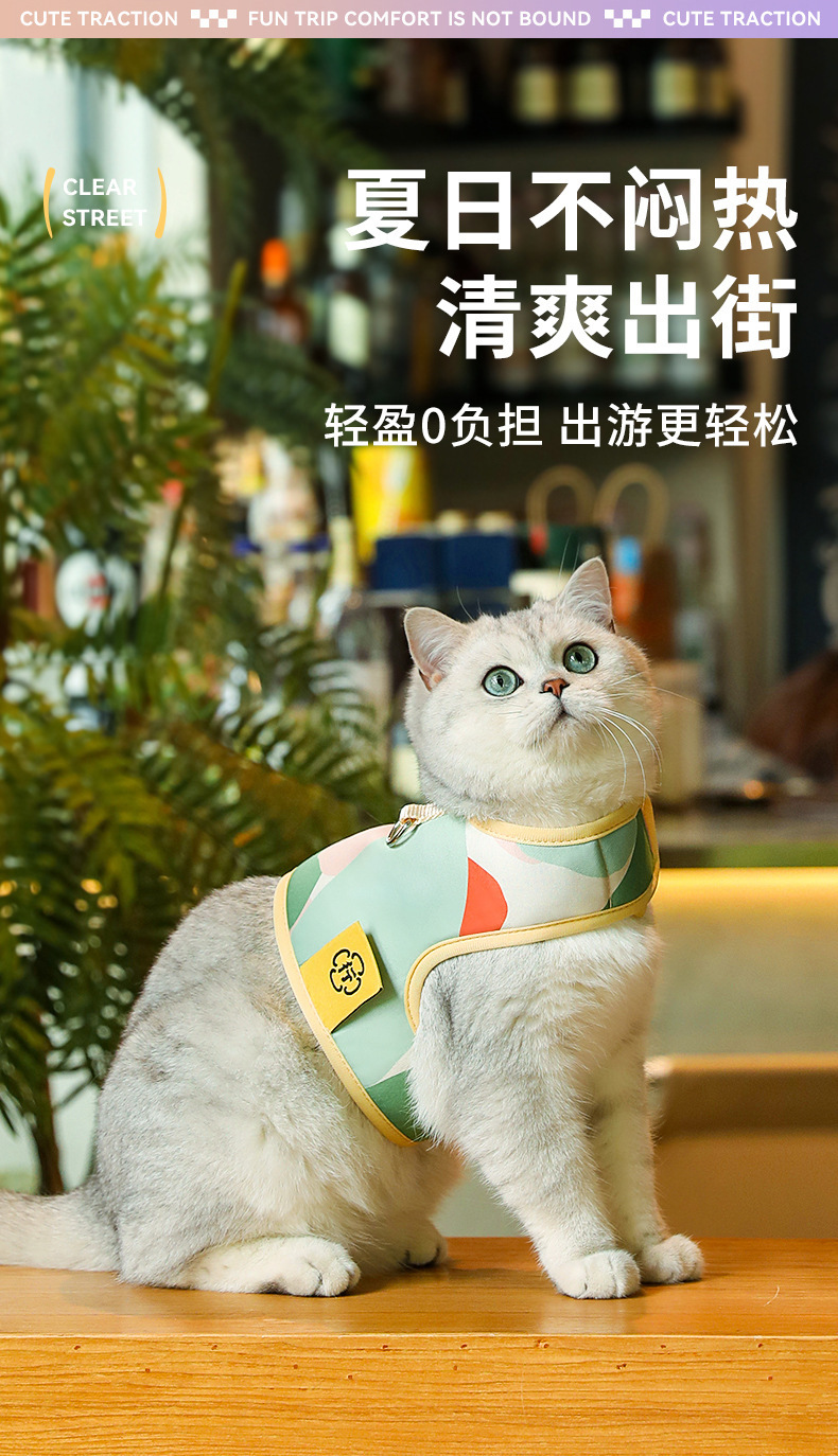 고양이 가죽 끈 개 조끼 스타일 애완 동물 가슴 스트랩 고양이 걷는 밧줄 안티 브레이크 아웃 특수 고양이 가슴과 등 크로스 보더스토어 가기