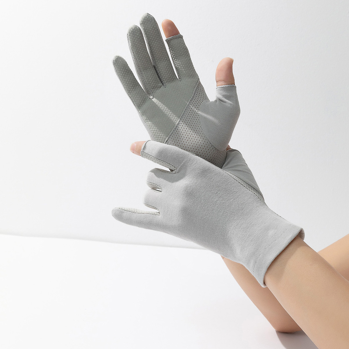 자외선 차단제 이슬 손가락 장갑 여성용 얇은 자외선 방지 반 손가락 면 짧은 여름 운전 미끄럼 방지 통기성 손가락 누출 터치 스크린