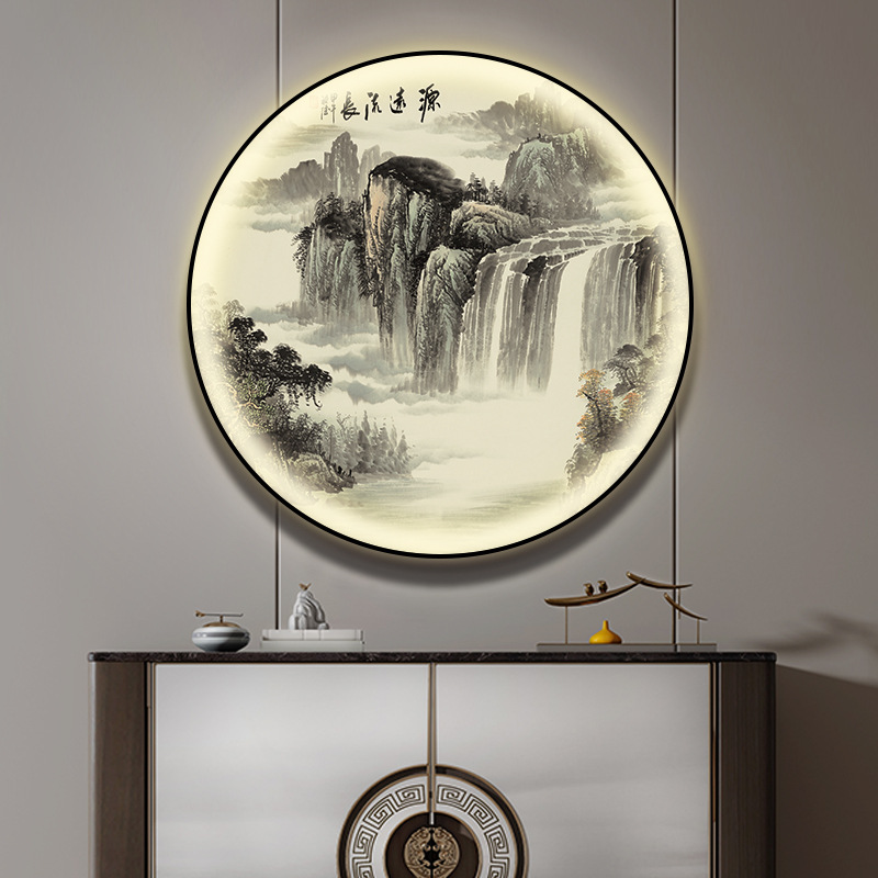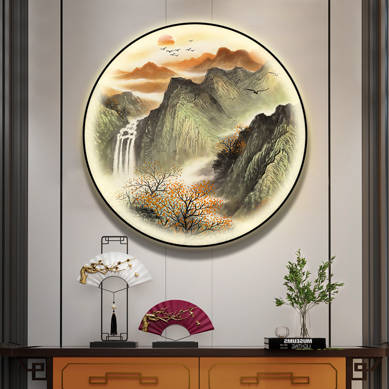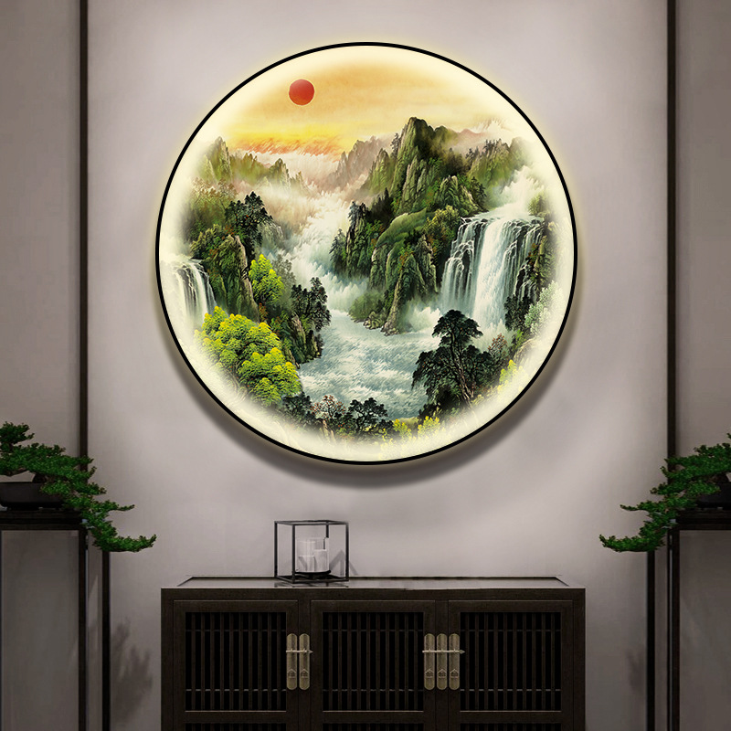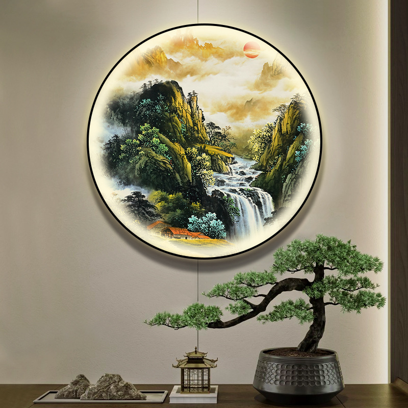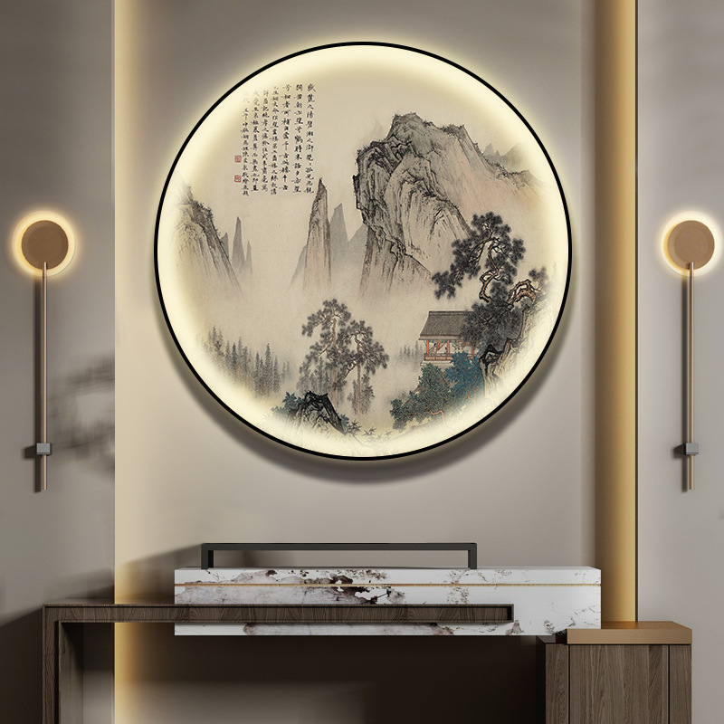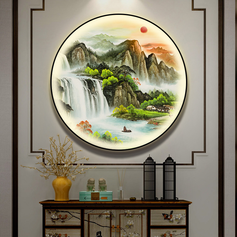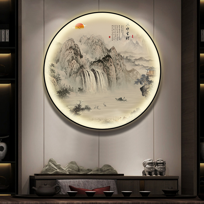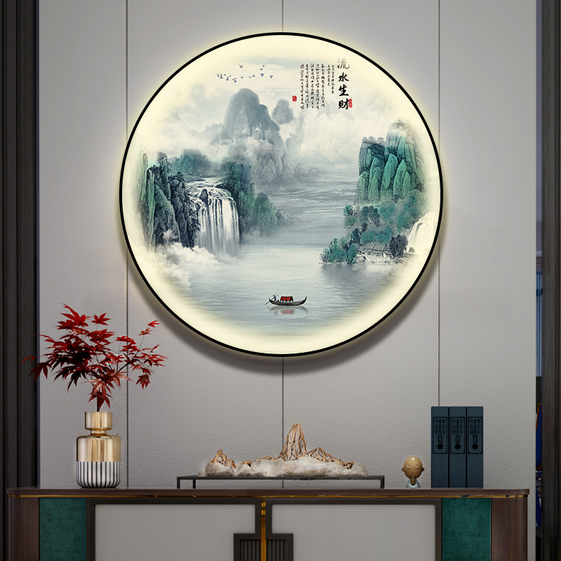 돈을 버는 유수 새로운 중국식 입구 장식 그림 원형 풍경 램프 그림 복도 끝 찻집 벽 걸이 그림스토어 가기