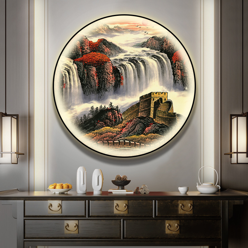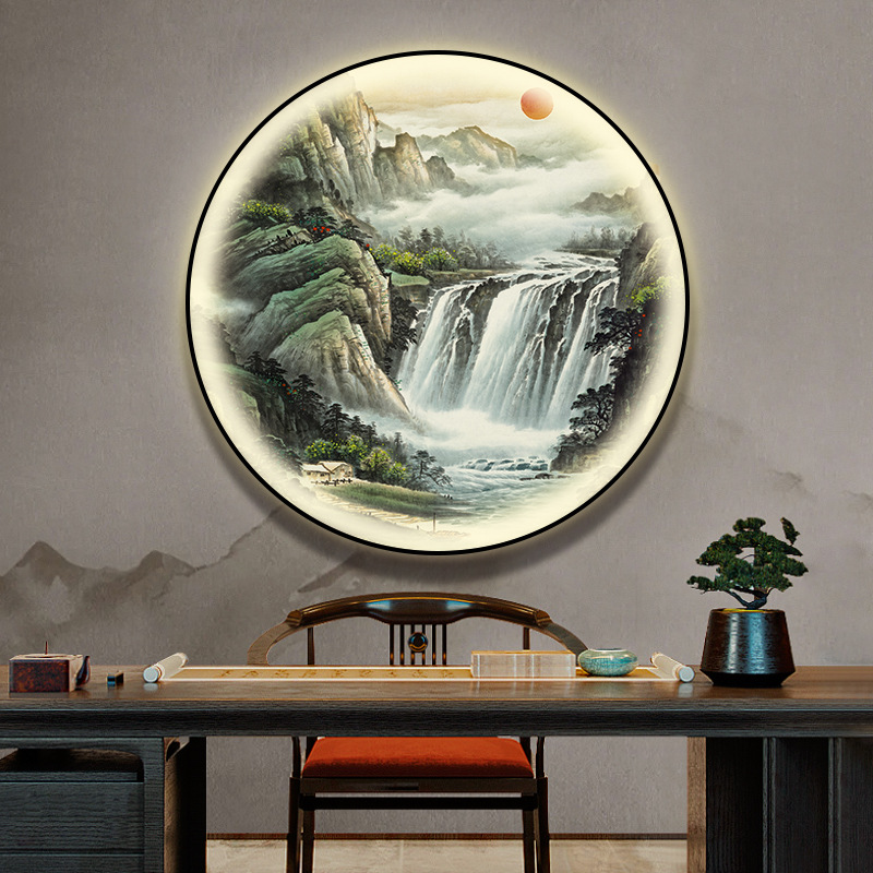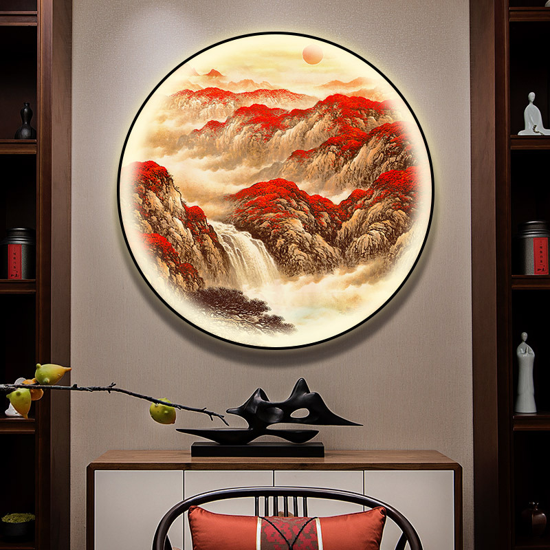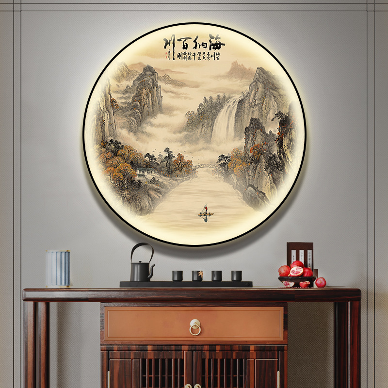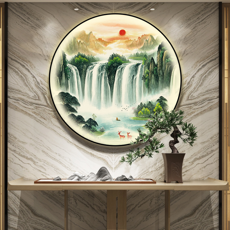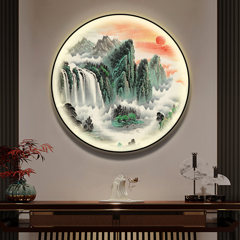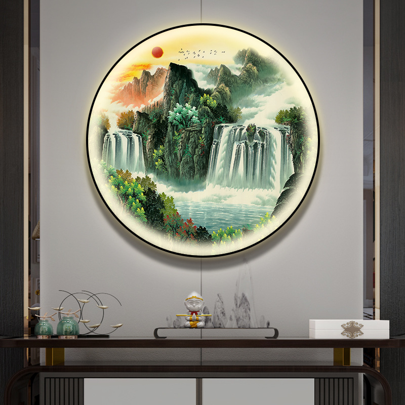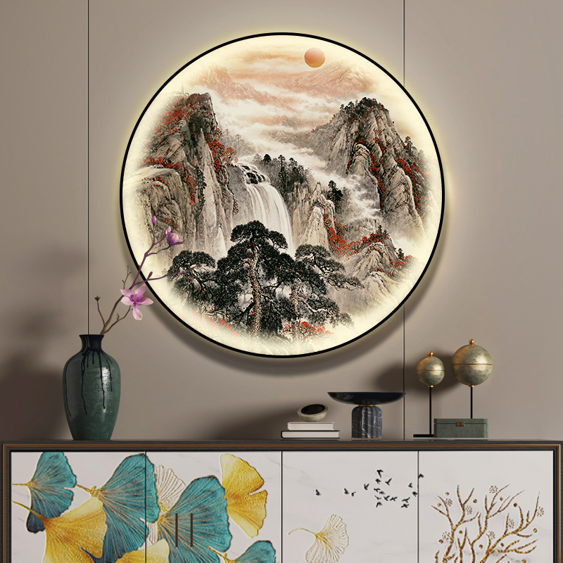 돈을 버는 유수 새로운 중국식 입구 장식 그림 원형 풍경 램프 그림 복도 끝 찻집 벽 걸이 그림스토어 가기