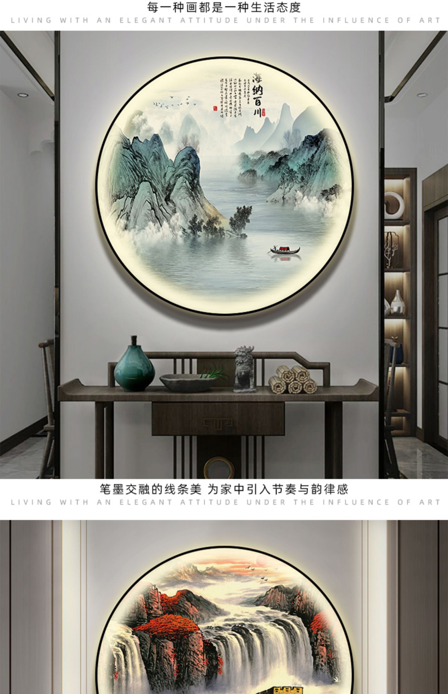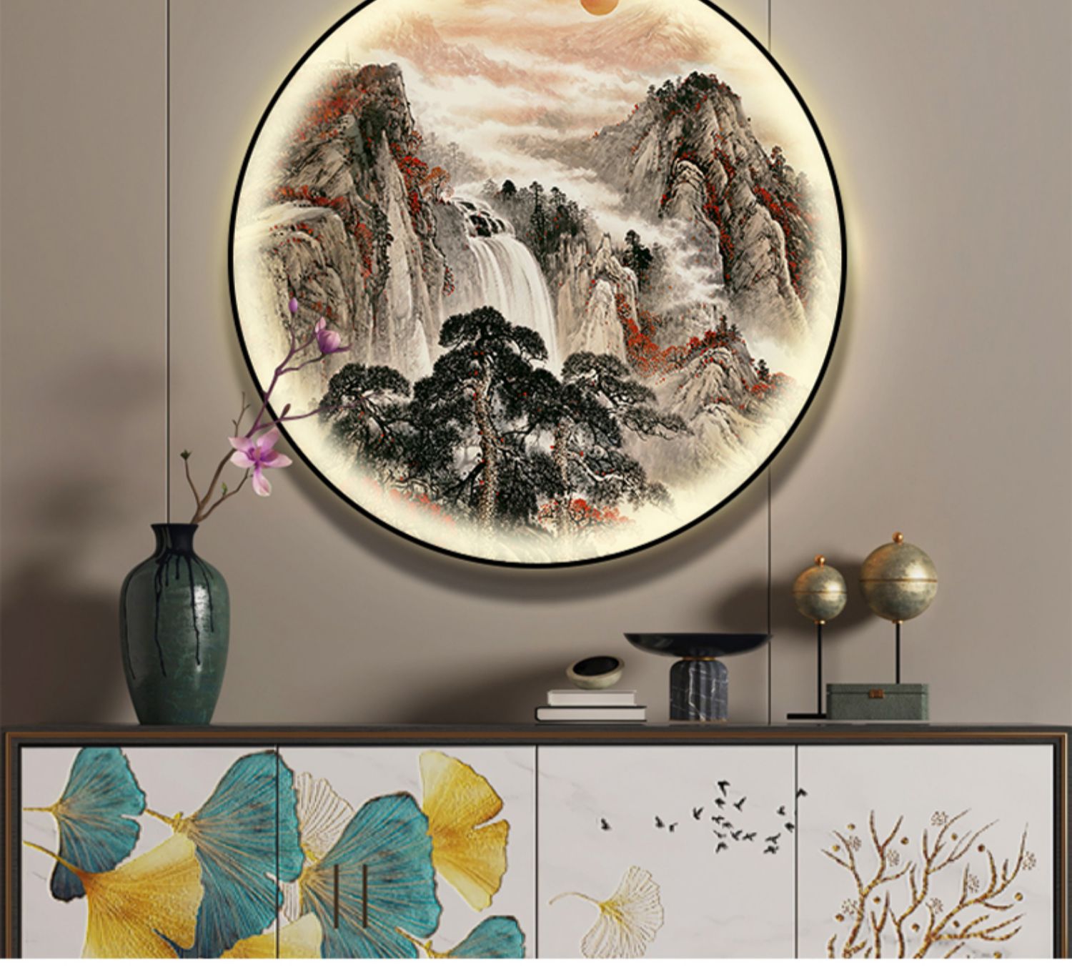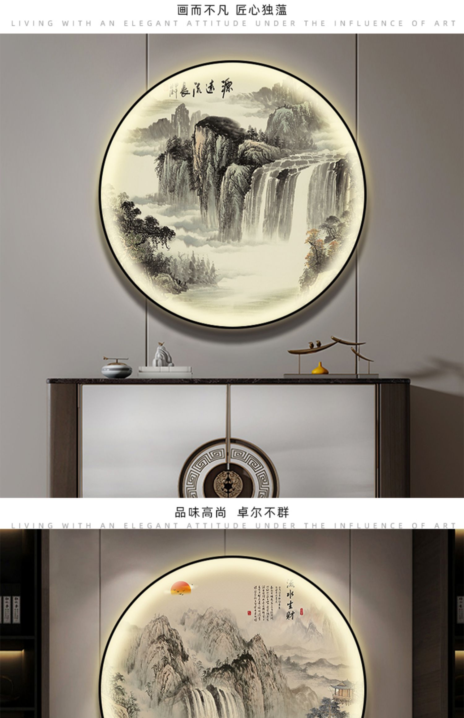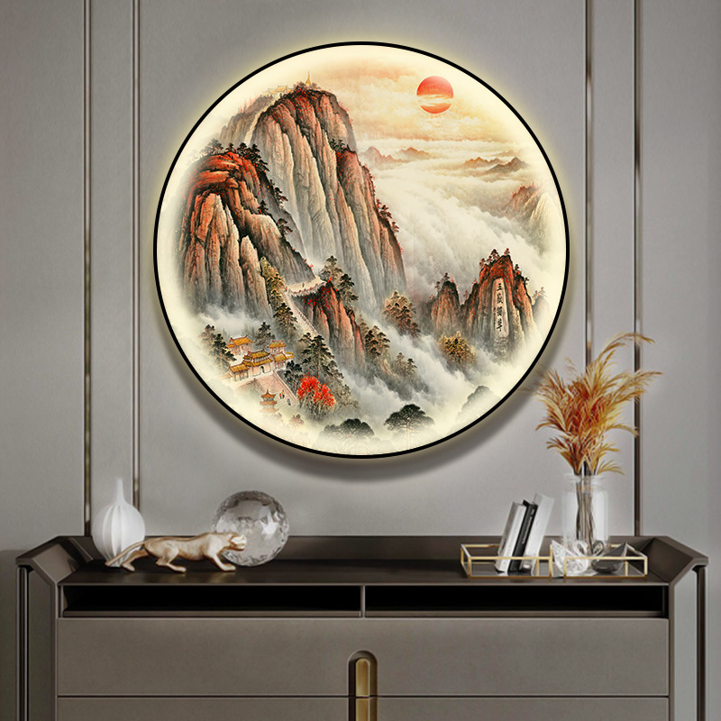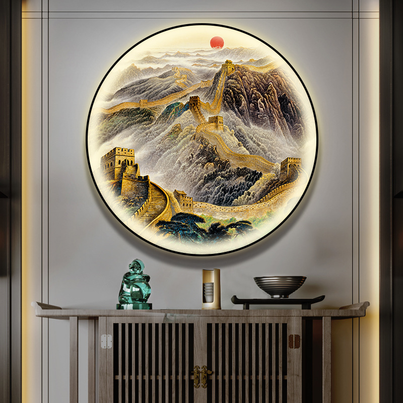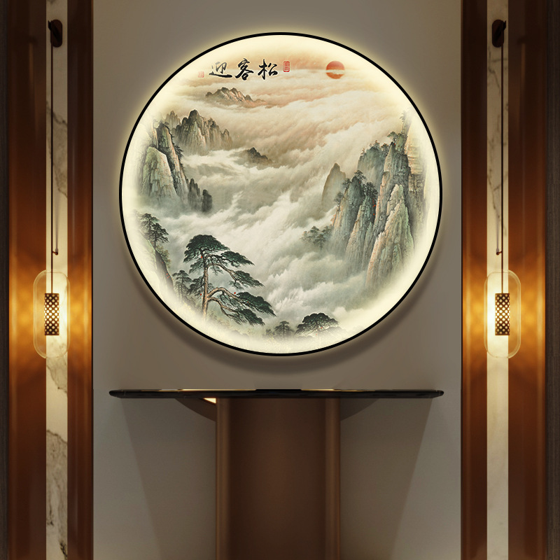 돈을 버는 유수 새로운 중국식 입구 장식 그림 원형 풍경 램프 그림 복도 끝 찻집 벽 걸이 그림스토어 가기
