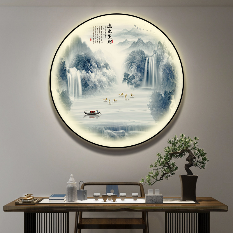 돈을 버는 유수 새로운 중국식 입구 장식 그림 원형 풍경 램프 그림 복도 끝 찻집 벽 걸이 그림
