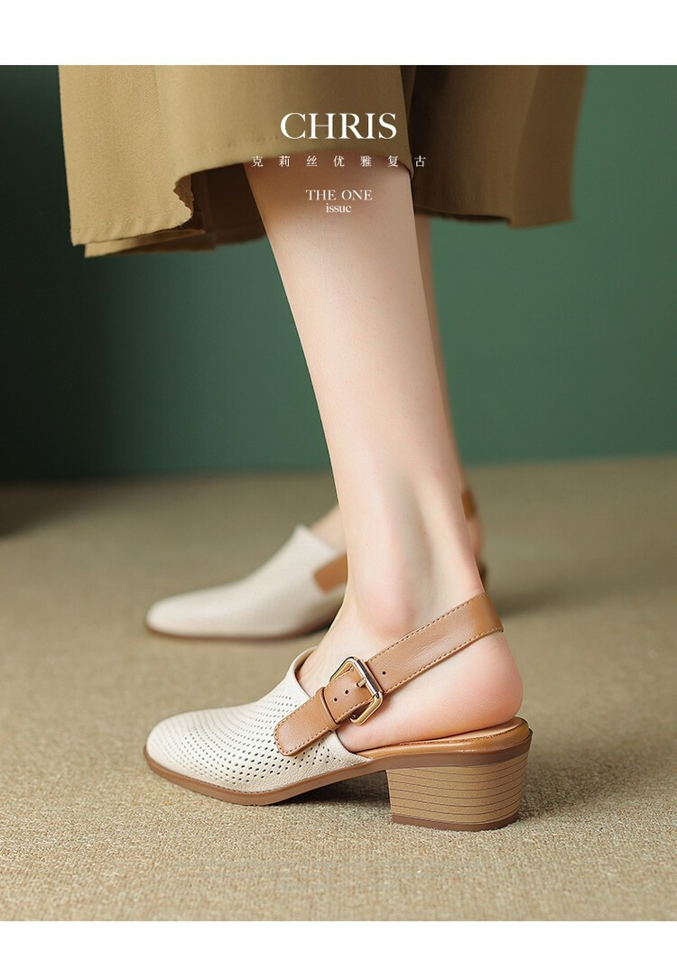 2023 여름 새로운 모든 매치 틈새 로마 여성 신발 중공 펀칭 유행 Baotou 여성용 중공 힐 샌들