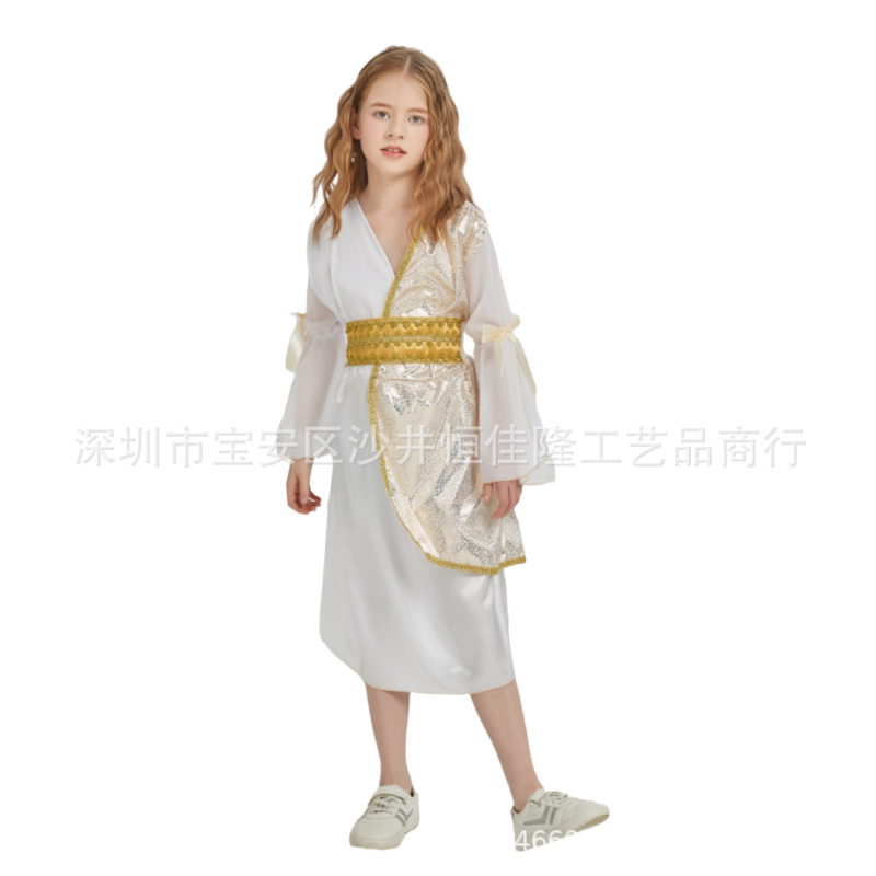 무대 공연 고귀한 공주 그리스 여신 놀이 천사 아이 아테나 소녀 공주 여성 여왕 의상