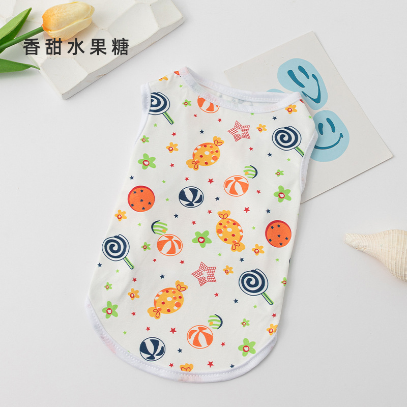 소스 공장 애완 동물 조끼 개 인쇄 만화 귀여운 조끼 강아지 옷 애완 동물 의류 개 조끼스토어 가기
