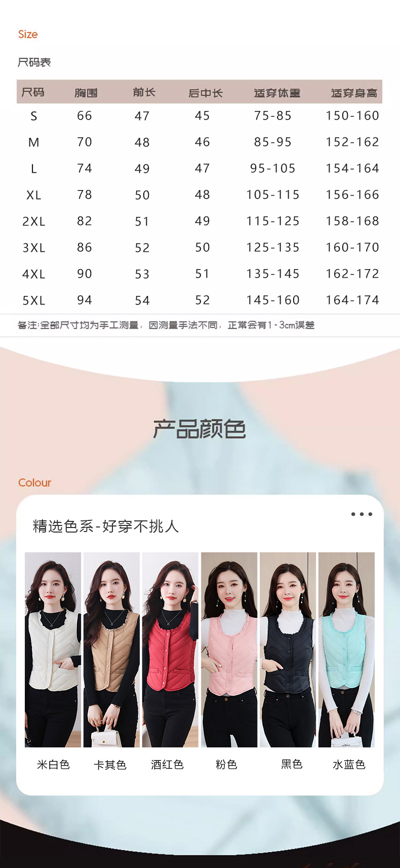 가을 겨울 신상 여성용 숏 다운 조끼, 이너웨어로 착용 가능한 따뜻하고 다용도로 활용 가능한 조끼